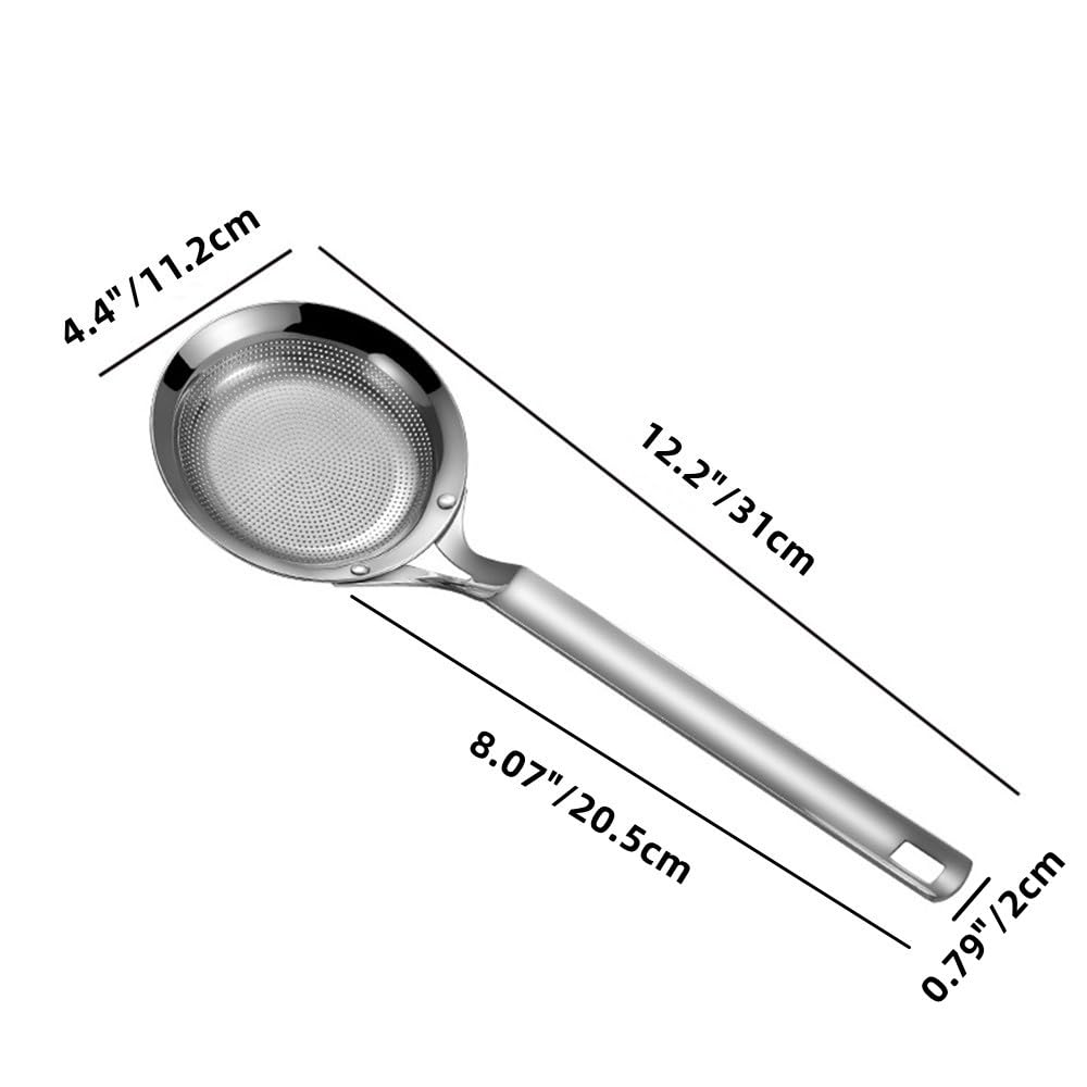 Küchenprofi gesucht? 👨🍳 Dieser Filterlöffel aus lebensmittelechtem Edelstahl 304 ist dein neuer bester Freund in der Küche! Mit 11,2 cm Durchmesser und 31 cm Gesamtlänge erreichst du auch tiefe Töpfe problemlos. Das feinmaschige Sieb entfernt mühelos Fett, Schaum und feste Partikel aus Suppen und Soßen. Der ergonomische Griff liegt perfekt in der Hand, und das Aufhänge-Loch sorgt für platzsparende Lagerung. Vielseitig einsetzbar für das Filtern von Säften, Wein oder sogar Medikamenten. Ein hochwertiges Küchenutensil, das sich sehen lassen kann! 🍲