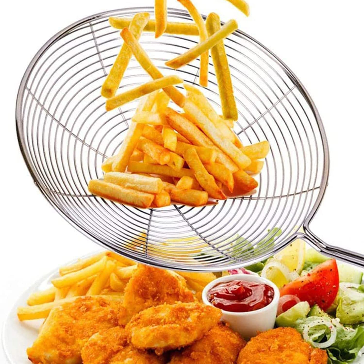 In der Küche kann man immer ein gutes Sieb gebrauchen! Dieses 2-teilige Set aus Edelstahl hat unterschiedliche Maschenweiten - fein für Fett und Schaum, grob für größere Stücke. Die langen Griffe schützen deine Hände vor Hitze, und das Aufhänge-Loch sorgt für platzsparende Aufbewahrung. Perfekt zum Frittieren, Abschäumen von Suppen oder einfach zum Abgießen. Robust, rostfrei und super easy zu reinigen. Einfach ein praktisches Küchen-Utensil, das dir das Leben leichter macht!