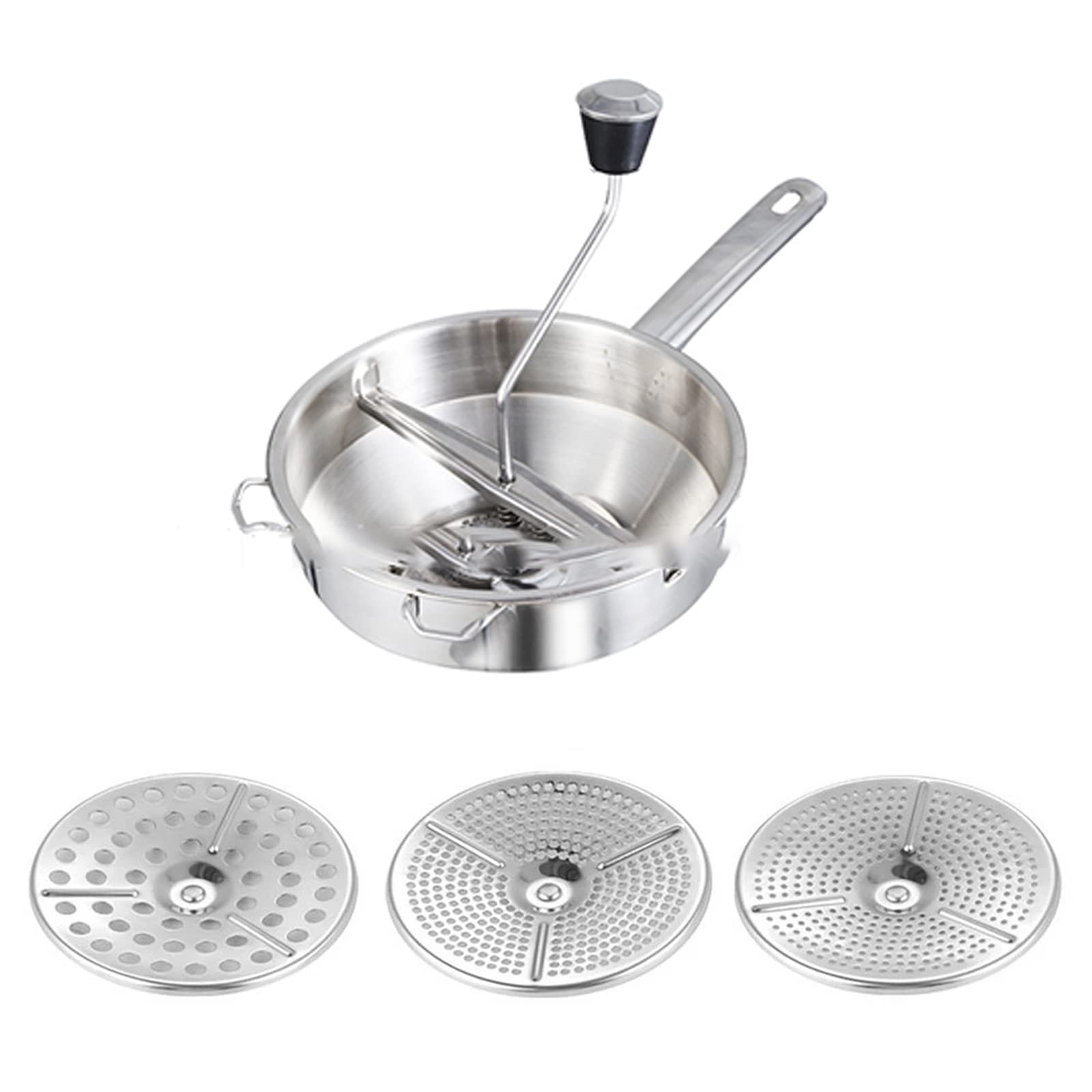 Mann, dieses Passiergerät ist ein echter Küchenhelfer! Aus Edelstahl, super robust und spülmaschinengeeignet. Kommt mit 3 verschiedenen Sieben - perfekt für Tomatensoße, Apfelmus, Kartoffelpüree, Marmelade oder Babynahrung. Einfach von Hand zu bedienen, der ergonomische Griff liegt super in der Hand. Maße ca. 19x20x33 cm, wiegt 547g. Macht super glatte Pürees ohne Klumpen. Viel effizienter als elektrische Geräte und dabei total leise. Perfekt für Restaurants oder zuhause. Einfach reinigen und immer bereit für deine nächste Kochsession!