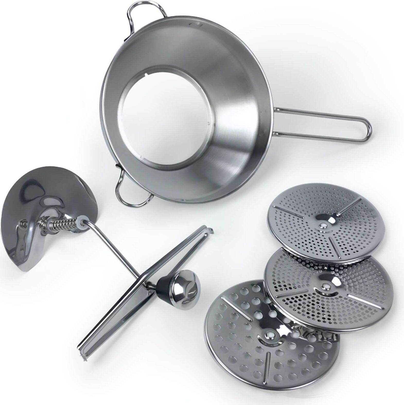 Koch-Enthusiasten, aufgepasst! Diese Edelstahl-Passiermühle ist ein Traum für die Küche. Mit 3 verschiedenen Sieben für feine, mittlere und grobe Konsistenzen. Perfekt für Kartoffelpüree, Babynahrung, Saucen oder Fruchtmus. Aus lebensmittelechtem Edelstahl, spülmaschinenfest und super hygienisch. Der ergonomische Griff liegt gut in der Hand und die federunterstützte Drehung macht das Passieren ganz leicht. Selbst heiße Speisen sind kein Problem - die hitzebeständigen Griffe schützen deine Hände. Ob für Bananen, Karotten, Avocado oder Käse - damit werden alle Pürees super cremig. Wie in der Profiküche, nur bei dir zu Hause! Gesundes Essen selbst gemacht war noch nie so einfach. Ein Küchenhelfer, der sich wirklich lohnt!