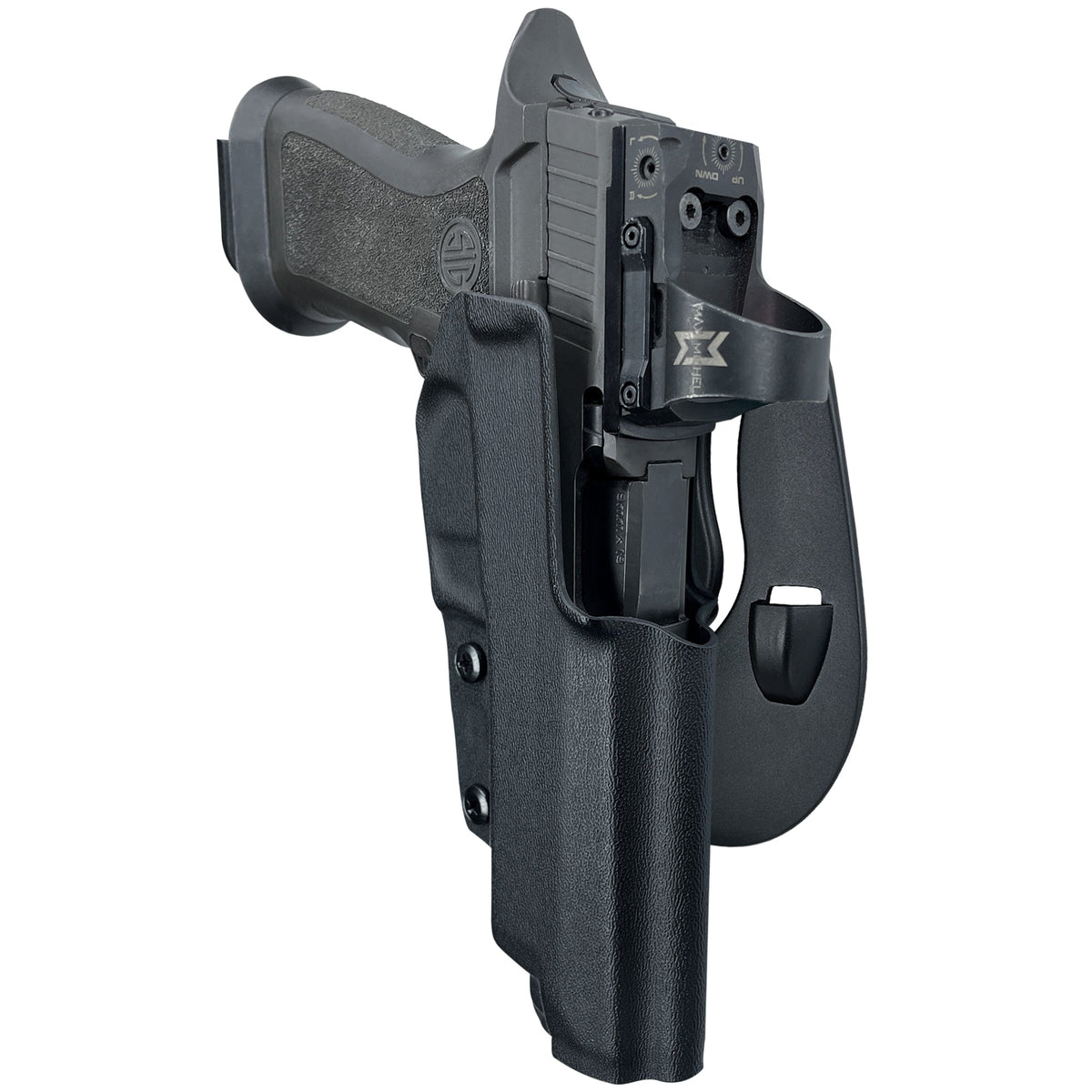 Alles griffbereit mit diesem praktischen Nylon-Holster von AK05! Speziell für die Sig Sauer P320 Compact und P250 Compact entwickelt, mit integrierter Magazintasche für noch mehr Komfort. Aus robustem 1000D Nylon gefertigt, ist das Holster langlebig und wasserabweisend - perfekt für den Einsatz unter verschiedenen Bedingungen! Die verstellbaren Laschen passen sich deinem Gürtel bis 6,5 cm Breite an. Super praktisch: Du kannst die Laschen auch komplett entfernen und das Holster als Schnellzieh-Version nutzen! Kompatibel mit Compact-Pistolen mit Läufen bis 4,5 Zoll. Und das Beste: Das Holster ist sowohl rechts als auch links tragbar - einfach die Laschen spiegelverkehrt anbringen! In schwarzer Farbe sieht es professionell aus und passt zu jeder Ausrüstung. Ob für Sport, Beruf oder Freizeit - mit diesem Holster hast du deine Waffe immer sicher und griffbereit dabei! Einfach anlegen und von der praktischen Lösung profitieren!