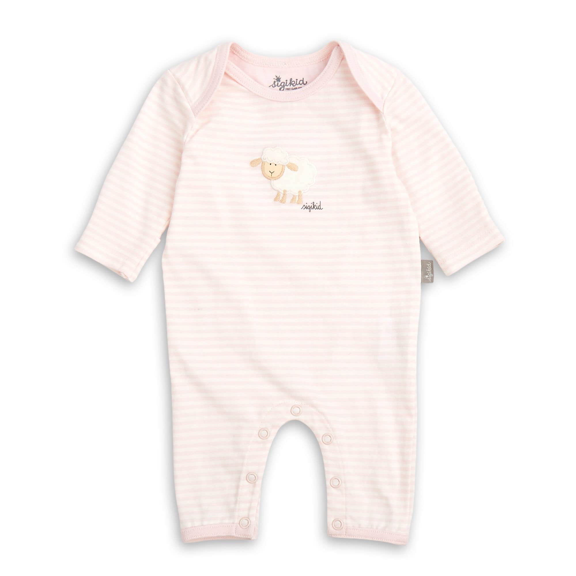 Oh wie niedlich! Dieser Sigikid Baby-Overall ist einfach zum Knuddeln. Aus rosa-weiß geringeltem Interlock - super weich und kuschelig.