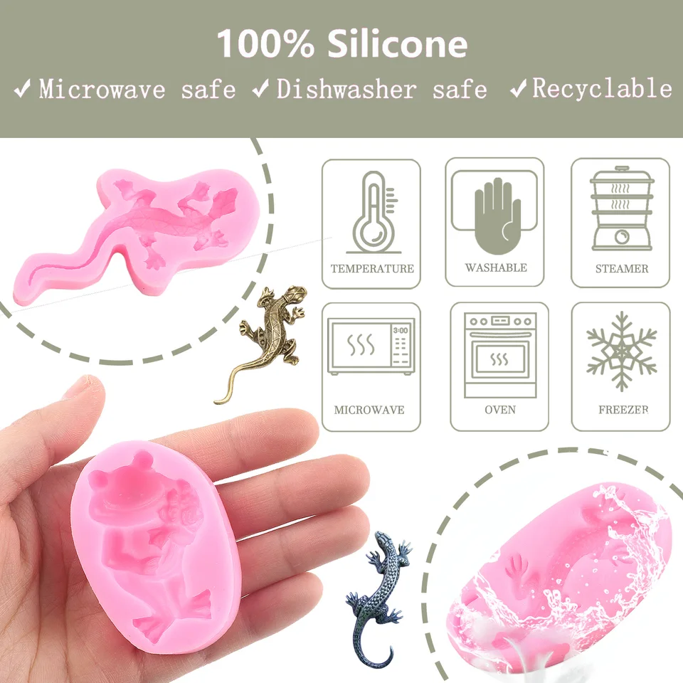 Oh, wie niedlich! Diese Eidechsen-Formen sind perfekt für alle Back-Fans. Das 5er-Set in verschiedenen Größen (von 1,92 bis 3,66 Zoll) ermöglicht dir viele kreative Möglichkeiten. Aus lebensmittelechtem Silikon sind sie hitzebeständig von -40 bis 220°C - also super für Ofen, Mikrowelle und Spülmaschine geeignet. Ob für Fondant, Schokolade, Blütenpaste oder Harz - damit kannst du deine Kuchen und Cupcakes ganz easy dekorieren. Die Antihaft-Oberfläche sorgt dafür, dass die Figuren sich leicht lösen lassen. Einfach Masse rein, abkühlen lassen und staunen! Perfekt für Geburtstage, Partys oder einfach so. Damit werden deine Backkreationen zum echten Hingucker!