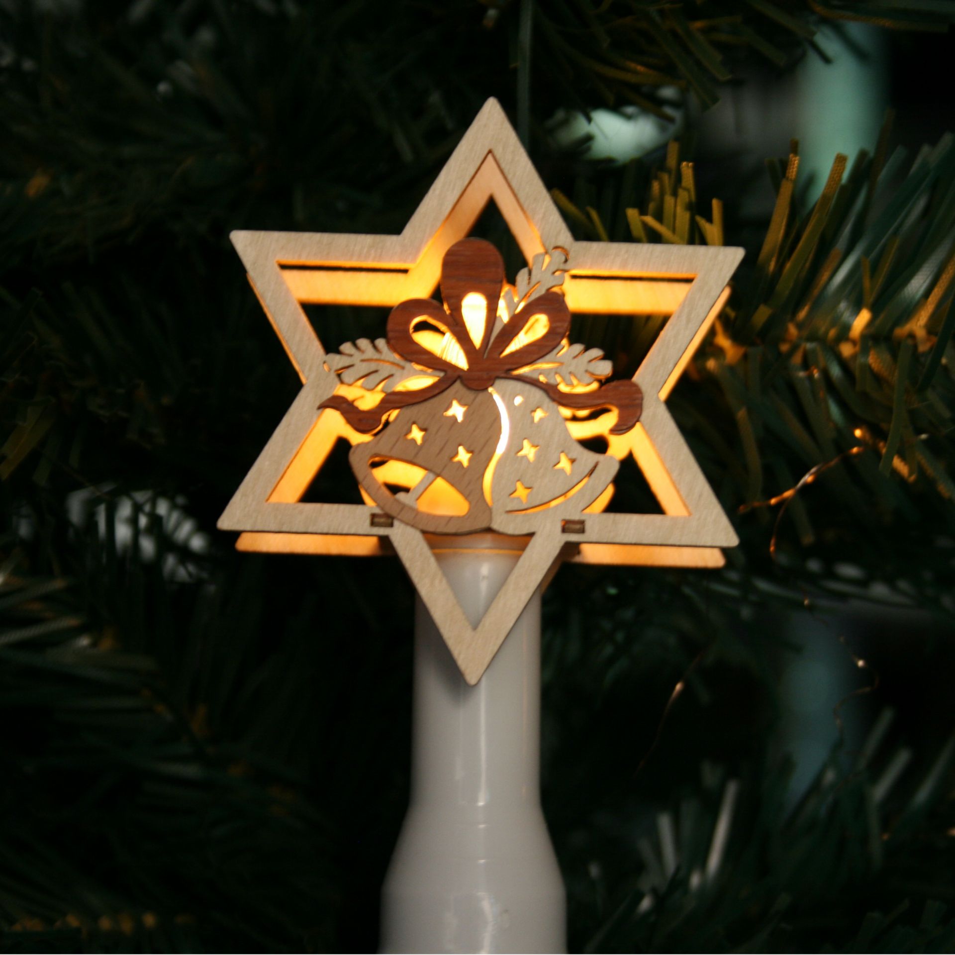 Weihnachtliche Stimmung pur! Diese süßen Eiskristall-Aufstecker aus Holz verwandeln deinen Schwibbogen oder Weihnachtsbaum in ein strahlendes Wunderland. Einfach auf die Lämpchen deiner Lichterkette stecken - schon verbreiten sie ein warmes, festliches Licht. Das 6er-Set reicht für einen kompletten Lichterbogen oder mehrere kleine Arrangements. Perfekt für handelsübliche Topfkerzen und elektrische Lichterketten. Jedes Stück ein kleines Kunstwerk, das die besondere Atmosphäre der Weihnachtszeit einfängt. Ob im Wohnzimmer, auf dem Fensterbrett oder als Tischdekoration - mit diesen Aufsteckern wird's gleich noch mal so gemütlich! Einfach anbringen, Licht an - und dich an der magischen Stimmung erfreuen. Traditionell, charmant und einfach wunderschön!