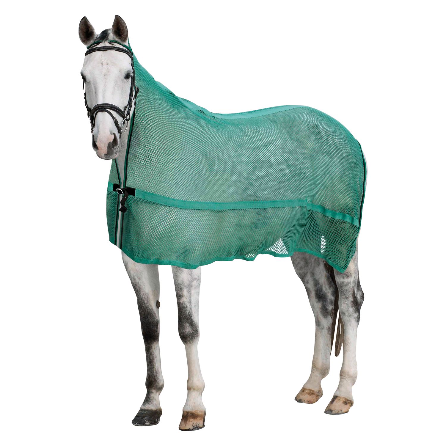 Dein Pferd verdient den besten Schutz vor Fliegen und Insekten! Die Euroriding Fliegendecke in Silber ist robust und dabei super leicht. Mit 145cm Größe (Größe L) passt sie perfekt auf die meisten Pferde. Das Halsteil ist fest mit der Decke verbunden, hat aber einen elastischen Einsatz - so kann dein Pferd bequem grasen, ohne dass es ziept oder drückt. Die Klettverschlüsse am Hals sind easy zu schließen. Wenn du das Halsteil mal nicht brauchst, einfach zusammenrollen und mit den Schnüren an der Decke befestigen. Der Bauchlatz und alle Gurte sind elastisch und verstellbar - sitzt also perfekt! Die Brustschnallen sind in der Länge einstellbar, plus extra Klett für noch besseren Halt. Die Nylon-Beingurte lassen sich auch anpassen, und der extra große Schweiflatz plus Schweifkordel bieten Rundum-Schutz. Perfekt für den Sommer im Paddock oder auf der Weide!