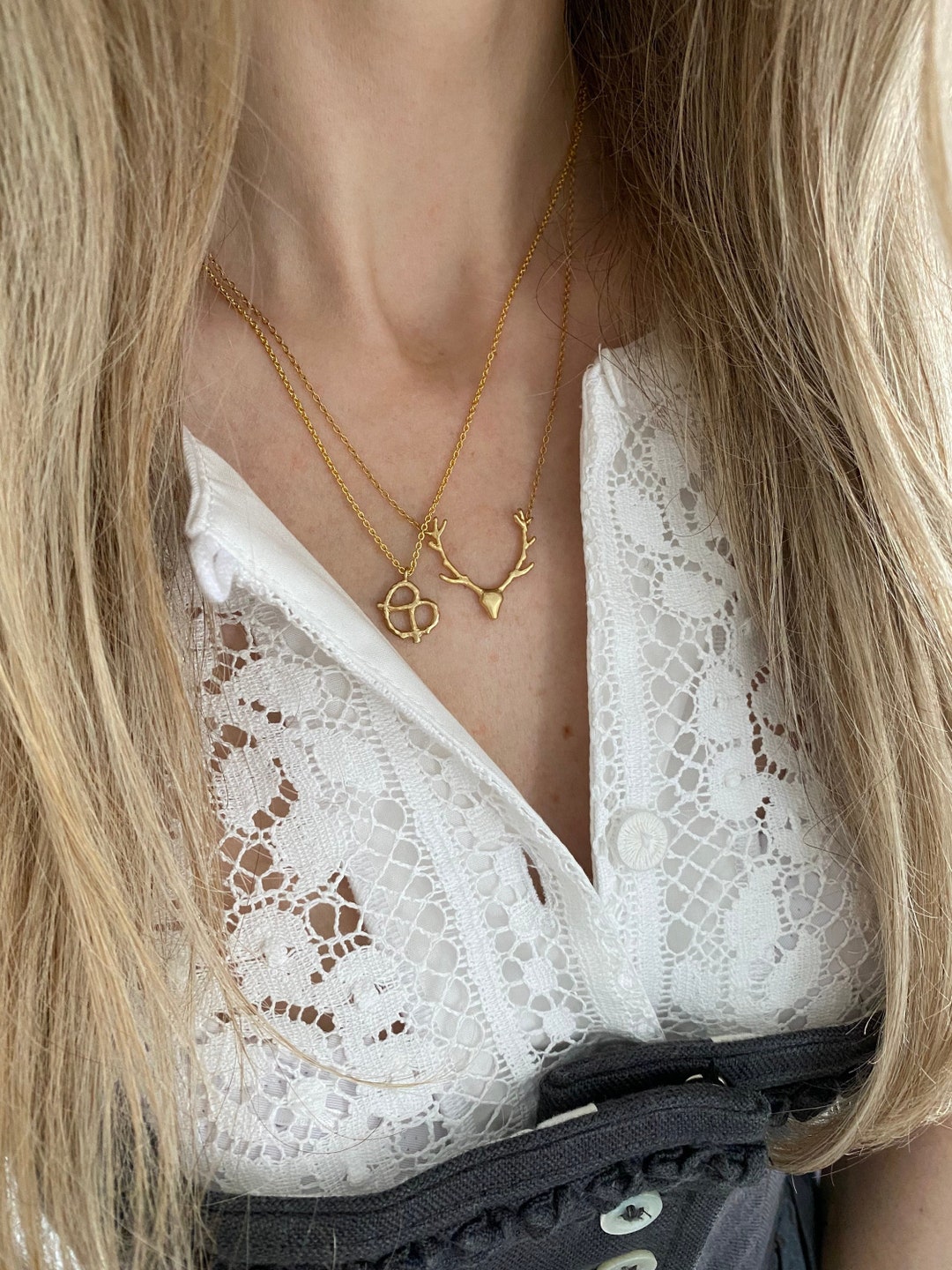 • Trachtenkette Mit Hirsch Anhänger Silber - Dirndl Schmuck Für Oktoberfest & Trachtenfest