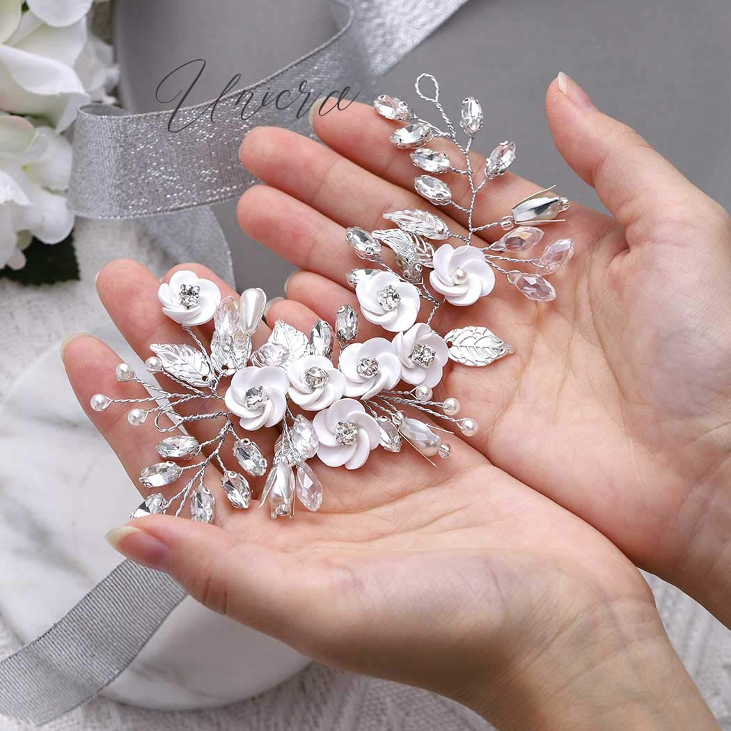 Bräute, dieser Haarschmuck ist einfach traumhaft! In Silber mit funkelnden Kristallen - sieht super edel aus. 23 cm lang - passt zu jeder Frisur. Handgefertigt mit Blumen und Perlen - jedes Stück ein Unikat. Leicht und flexibel - sitzt perfekt ohne zu drücken. Perfekt für Hochzeiten, Bälle oder besondere Anlässe. Auch super für Brautjungfern oder Blumenmädchen. Macht dich zur strahlenden Braut!