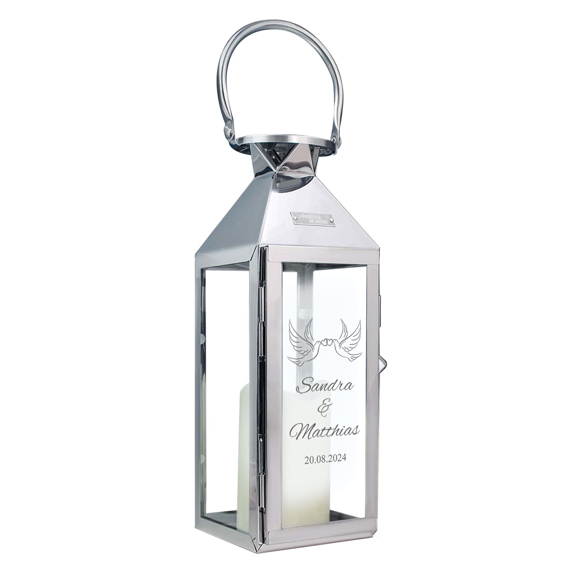 Was für ein wunderschönes Geschenk zur Silberhochzeit! Diese personalisierte Laterne wird das Brautpaar garantiert begeistern. Aus hochwertigem Edelstahl und Glas - richtig wertig verarbeitet. Wir gravieren die Namen des Paares und das Hochzeitsdatum ein - so wird's zu einem einzigartigen Erinnerungsstück. Wetterfest - kann draußen im Garten oder drinnen im Wohnzimmer stehen. In Weiß oder Schwarz erhältlich - passt zu jedem Einrichtungsstil. Made in Germany - Qualität die man sieht und fühlt! Verschiedene Größen verfügbar - such dir die passende aus! Schafft eine romantische Atmosphäre bei Kerzenschein. Ein Geschenk das von Herzen kommt und jahrelang Freude bereitet. Perfekt für Eltern, Großeltern oder Freunde die Jubiläum feiern. Mach das besondere Ereignis unvergesslich mit dieser personalisierten Laterne!
