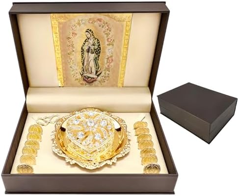 Wow, dieses wunderschöne Arras de Boda Set ist einfach perfekt für eure katholische Trauung! Das Set kommt mit 13 eleganten Silbermünzen, die in einer richtig edlen Geschenkbox mit funkelnden Strasssteinen verpackt sind. Jede Münze hat einen Durchmesser von 1,9 cm - ungefähr so groß wie ein US-Dime. Die Box selbst misst 6x6x3,7 cm und sieht einfach hochwertig aus. Bei der Trauung tauscht ihr die Münzen aus, was für Liebe, Einheit und Wohlstand in eurer Ehe steht. Egal ob für eure eigene Hochzeit oder als total persönliches Geschenk für frisch verheiratete Paare - damit macht ihr garantiert eine gute Figur! Die Tradition der Hochzeitsmünzen wird in vielen katholischen Ländern gelebt und verleiht eurer Zeremonie diesen besonderen, traditionellen Touch. Und mal ehrlich: Wer freut sich nicht über so ein elegantes Andenken an den wichtigsten Tag im Leben?