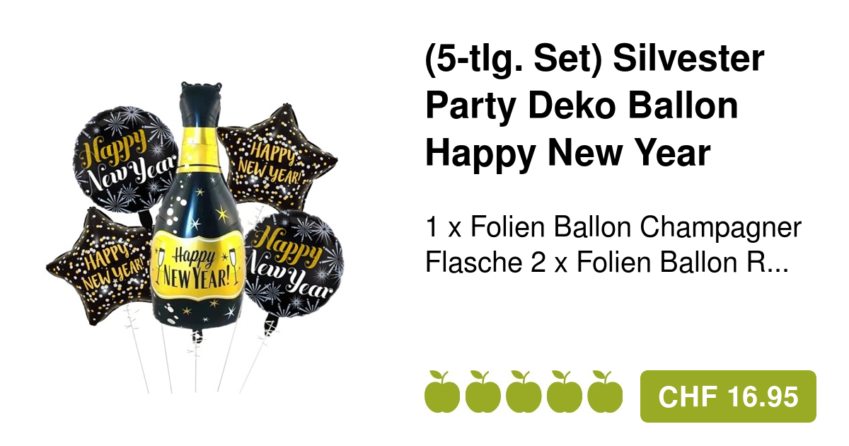 Mach deine Silvesterparty 2026 unvergesslich mit diesen mega-coolen XXL-Ballons! Die vier silbernen Folienballons mit der Jahreszahl 2026 sind jeweils stolze 81 cm hoch und sehen einfach bombig aus. Die glänzende Metallic-Oberfläche verleiht deiner Deko einen richtig edlen Look. Egal ob du sie mit Luft oder Helium füllst - sie machen sowohl an der Wand als auch schwebend eine super Figur. Perfekt für große Räume, als Fotohintergrund oder als Eyecatcher auf dem Buffet. Die Ballons haben ein praktisches Ventil, sodass du sie sogar mehrmals verwenden kannst. Achtung: Wie bei allen Folienballons sollten Kinder unter 8 Jahren nur unter Aufsicht damit spielen. Lieferumfang: 4 Ballons mit den Zahlen 2, 0, 2 und 6. Hol dir jetzt den perfekten Party-Deko für den Jahreswechsel und starte mit Style ins neue Jahr!