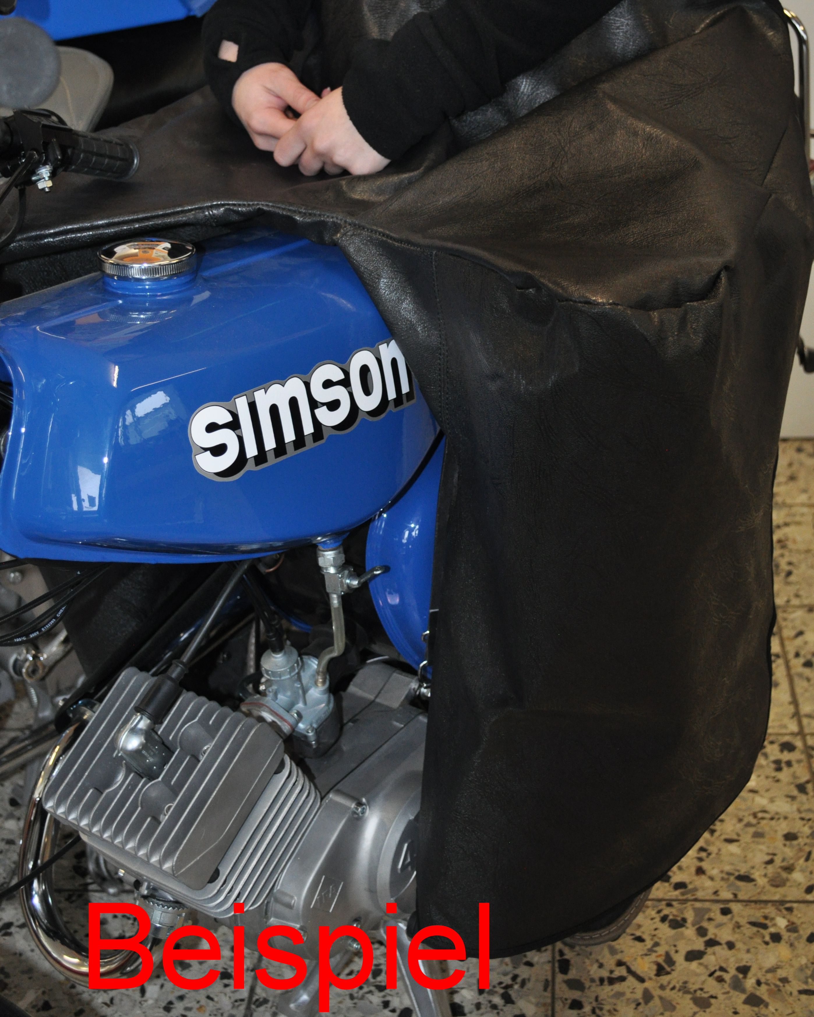 Hey Simson-Fahrer! Diese Knieschutzdecke ist genau das Richtige für die kalten Jahreszeiten. In schwarzem Kunstleder sieht sie nicht nur gut aus, sondern schützt dich auch super vor Wind und Wetter. Einfach mit den Schnallriemen zwischen Tank und Sitzbank befestigen - schon bist du ready für die nächste Fahrt. Hergestellt in Deutschland, also Qualität, auf die du dich verlassen kannst. Passt perfekt für S50, S51 und S70 Modelle. Nie wieder frierende Knie auf der Fahrt zur Arbeit oder bei der Sonntagsausfahrt! Einfach montieren und losdüsen - egal bei welchem Wetter.