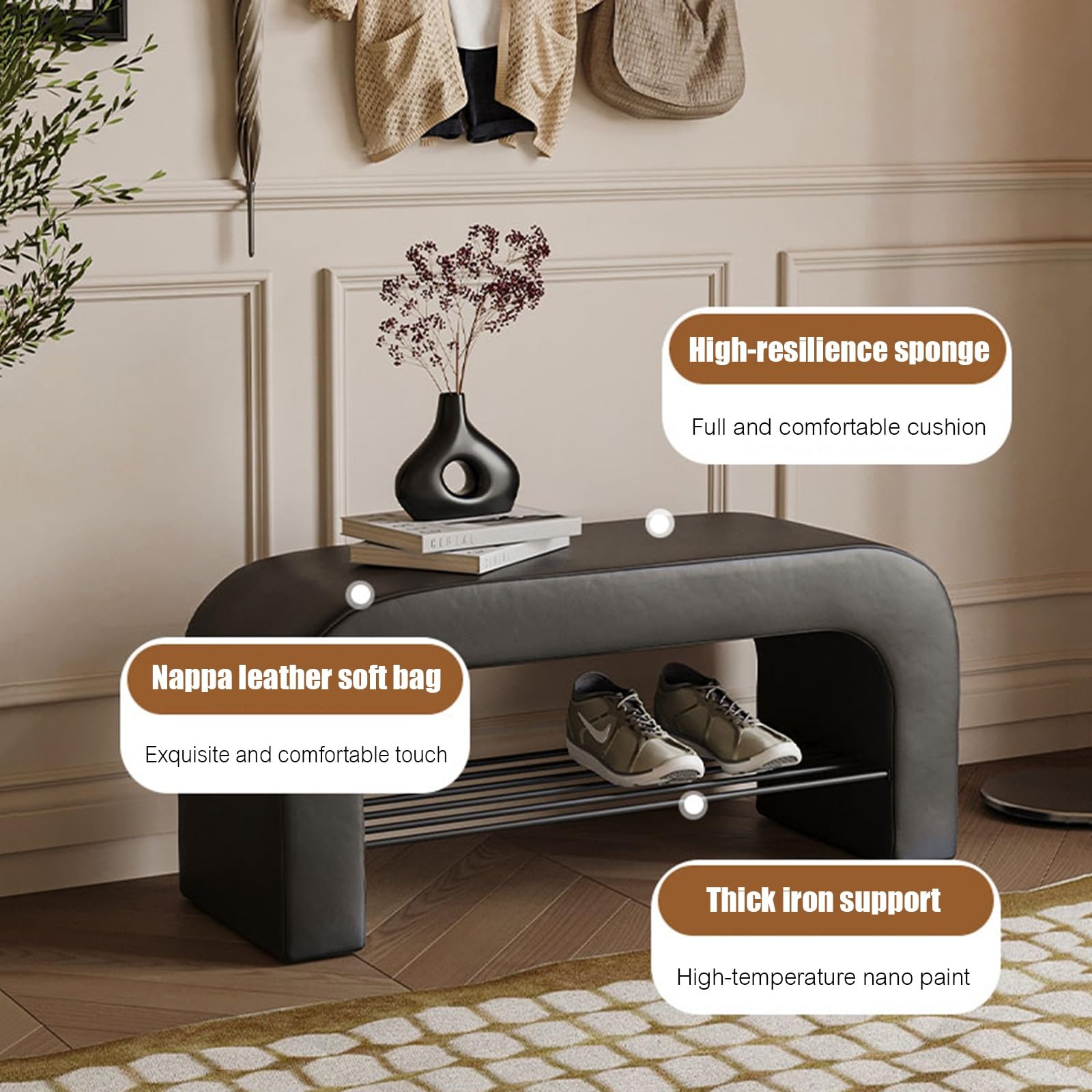 Diese gepolsterte Aufbewahrungsbank ist so praktisch - sie ist Sitzgelegenheit und Schuhregal in einem! Aus weichem, atmungsaktivem PU-Leder, das sich super pflegen lässt - einfach mit nem feuchten Tuch abwischen und schon sieht sie wieder aus wie neu. Der hochbelastbare Schwamm sorgt für einen bequemen Sitz, auch wenn du mal länger draufsitzt. Und unten ist genug Platz für mehrere Paar Schuhe, aber auch für Taschen, Handschuhe oder was du sonst so griffbereit haben willst. Es gibt sie in verschiedenen Farben (schwarz, weiß, grau, braun) und Größen (60cm, 80cm, 100cm), also findest du sicher was zu deinem Einrichtungsstil passt. Das Beste: Keine Montage nötig! Einfach auspacken und hinstellen - sofort einsatzbereit. Perfekt für den Flur, aber auch super im Schlafzimmer, Wohnzimmer oder sogar im Büro. Sie ist leicht genug, um sie bei Bedarf mal umzustellen, aber stabil genug, dass sie sicher steht. So wird dein Zuhause gleich viel ordentlicher und gemütlicher!