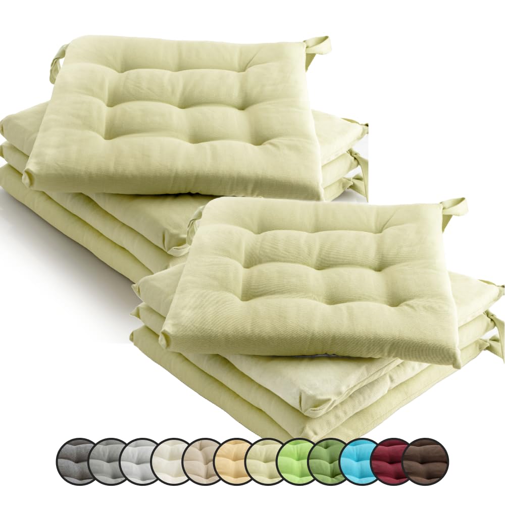 Endlich bequem sitzen - drinnen und draußen! Dieses praktische 2er-Set Sitzkissen macht jeden Stuhl zur Wohlfühloase. Mit den praktischen Bändern verrutschen sie nicht und bleiben sicher an Ort und Stelle. Perfekt für Gartenstühle, Rattanmöbel, Balkonstühle oder auch innen im Esszimmer. Die 38x38cm großen und 3cm dicken Kissen bieten optimalen Komfort. Aus strapazierfähigem Material, das sich bei 30°C in der Maschine waschen lässt. Erhältlich in verschiedenen Farben wie Grün, Grau, Creme, Braun, Türkis oder Bordeaux - da findet jeder seinen Lieblingston. Auch als 4er, 6er oder 8er Set erhältlich. Mach deine Sitzmöbel gemütlich und stylisch - bestell noch heute!