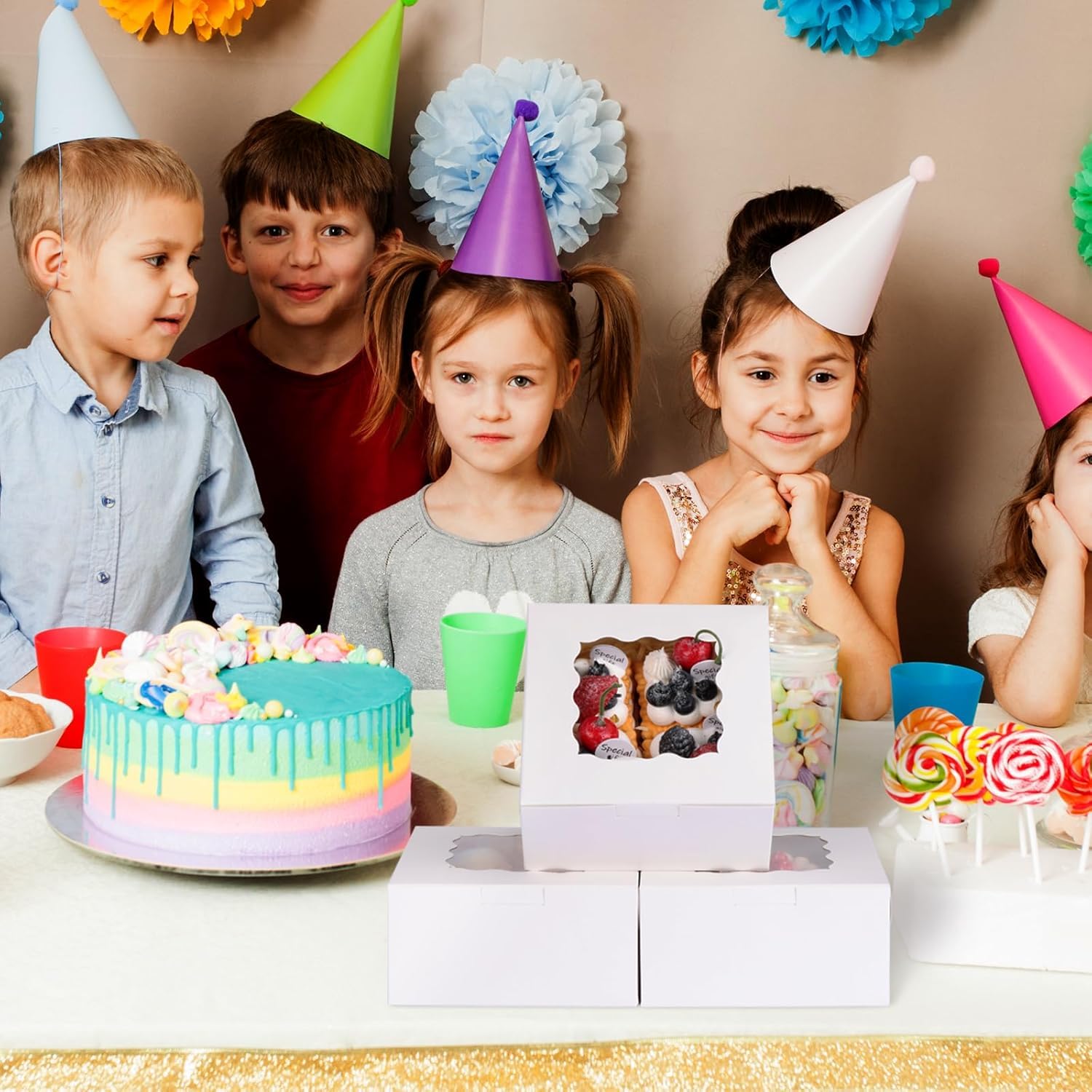 Perfekt für alle Hobby-Bäcker und Profis! Dieses Set mit 30 weißen Gebäckboxen ist der absolute Hit. Maße: 10x10x6cm (4x4x2.5 Zoll) - passen perfekt für 6-8 Macarons, kleine Törtchen, Cupcakes (ohne hohe Kuppel!), Trüffel oder Erdbeeren. Mit transparentem Fenster an der Oberseite, damit man die leckeren Köstlichkeiten gleich bewundern kann. Aus hochwertiger, lebensmittelechter Pappe - recyclebar und super stabil. Einfach zusammenzufalten: entlang der vorgeprägten Linien knicken und schon hast du eine niedliche Geschenkbox. Inklusive 'Dankeschön'-Aufkleber zum Verzieren. Ideal für Hochzeiten, Geburtstage, Babypartys, Weihnachten oder einfach so. Für trockene Backwaren perfekt - bei öligen oder feuchten Leckereien empfehlen wir Backpapier reinzulegen. Macht jedes Gebäck zum Eyecatcher!