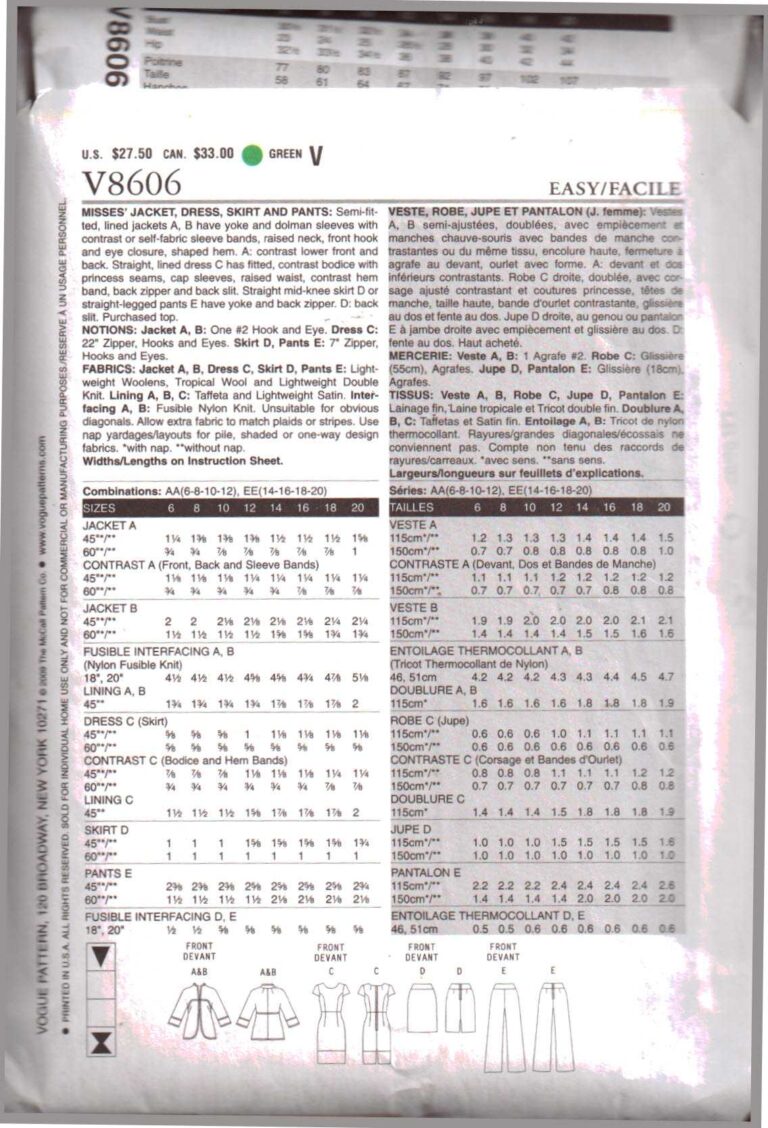 Vogue Schnittmuster Damenkleid - Size EE (14-16-18-20) Mit Nähanleitung