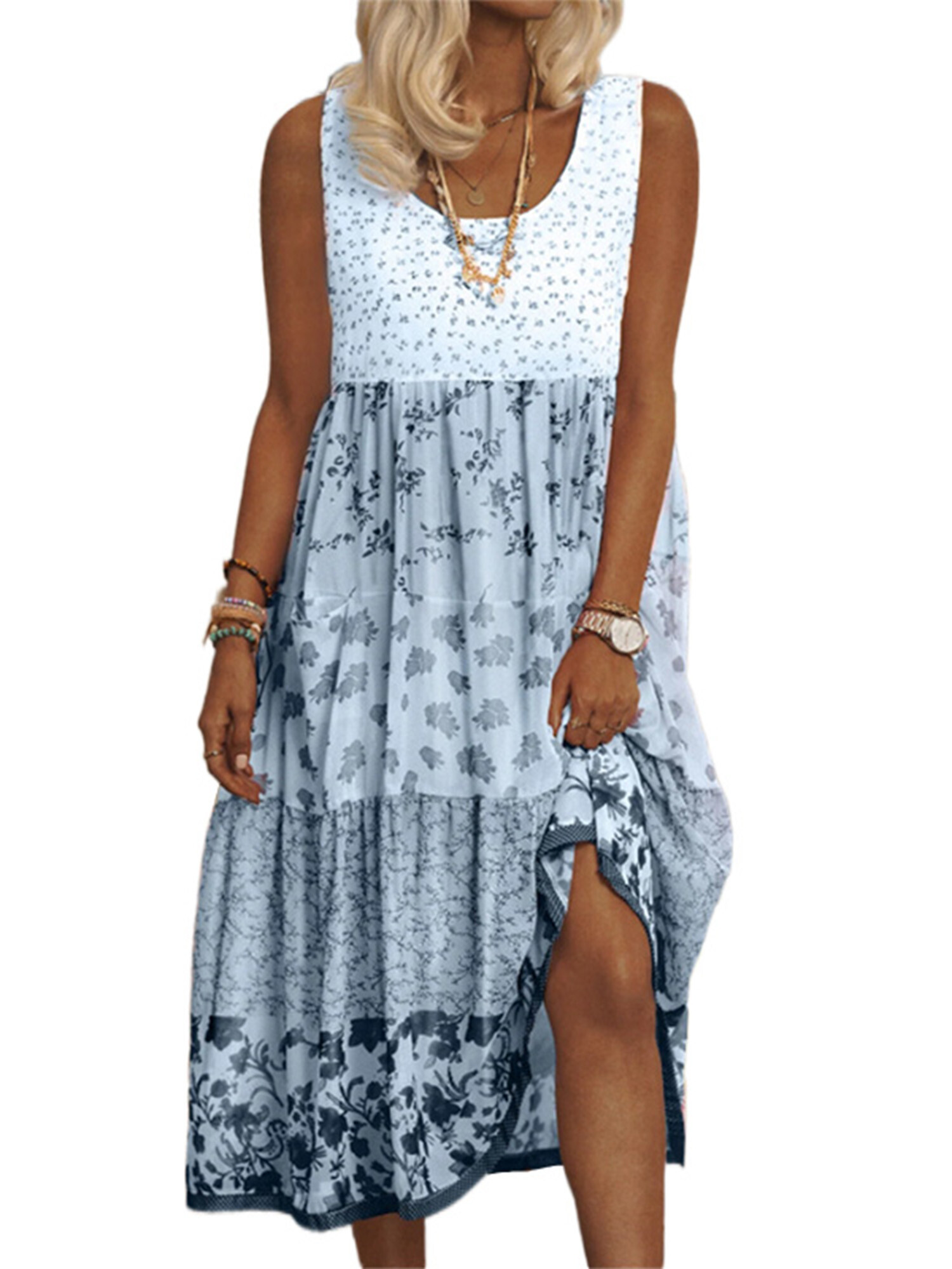 • MIAMODA Damen Plus Size Kleid Ärmellos - Mesh Farbverlauf A-Linie