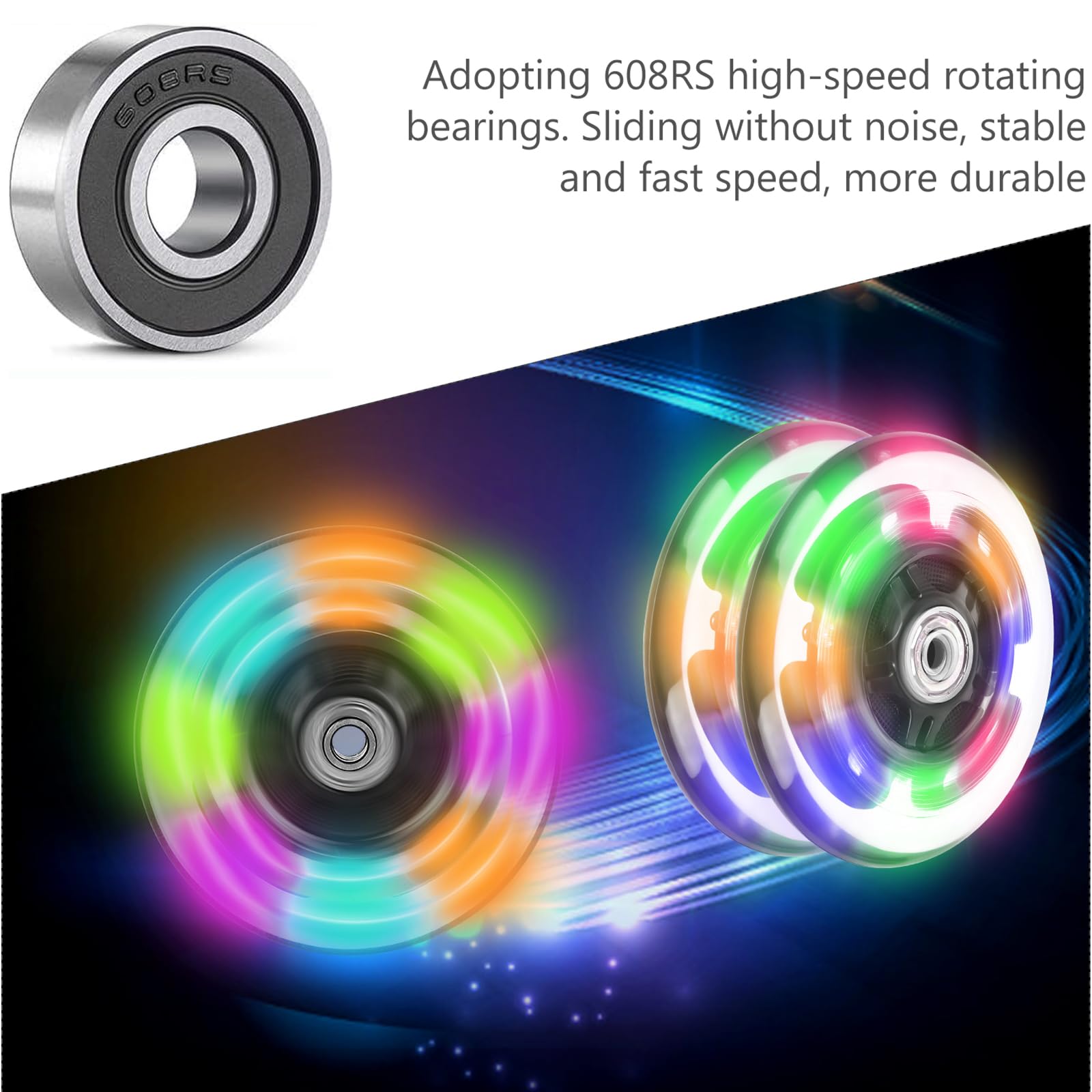 Hey Skater! Willst du deine Inlineskates aufpeppen? Dann sind diese 8 leuchtenden LED-Rollen genau das Richtige für dich! Mit einem Durchmesser von 72mm und einer Härte von 82A bieten sie dir ein super Smooth-Rollgefühl auf verschiedenen Untergründen. Die integrierten LEDs leuchten bei jeder Fahrt in einem coolen Schwarztransparent-Design und machen dich auch bei Dunkelheit sichtbar – ideal für abendliche Touren. Dank der ABEC-7 Kugellager läufst du nicht nur leise, sondern auch extrem langlebig und verschleißarm. Egal, ob du auf der Straße, im Park oder beim Freestyle unterwegs bist, diese Rollen geben dir die nötige Kontrolle und Stabilität. Sie sind universell kompatibel mit den meisten Inline-Skate-Marken und lassen sich einfach austauschen. Das PU-Material sorgt für eine hohe Rückprallkraft und eine hervorragende Griffigkeit, sodass du auch bei schnellen Manövern sicher unterwegs bist. Perfekt für Anfänger und Fortgeschrittene, die ihr Skating-Erlebnis verbessern wollen. Also, schnapp dir dieses 8er Pack und mach deine Skates fit für die nächste Runde – Style und Performance in einem!