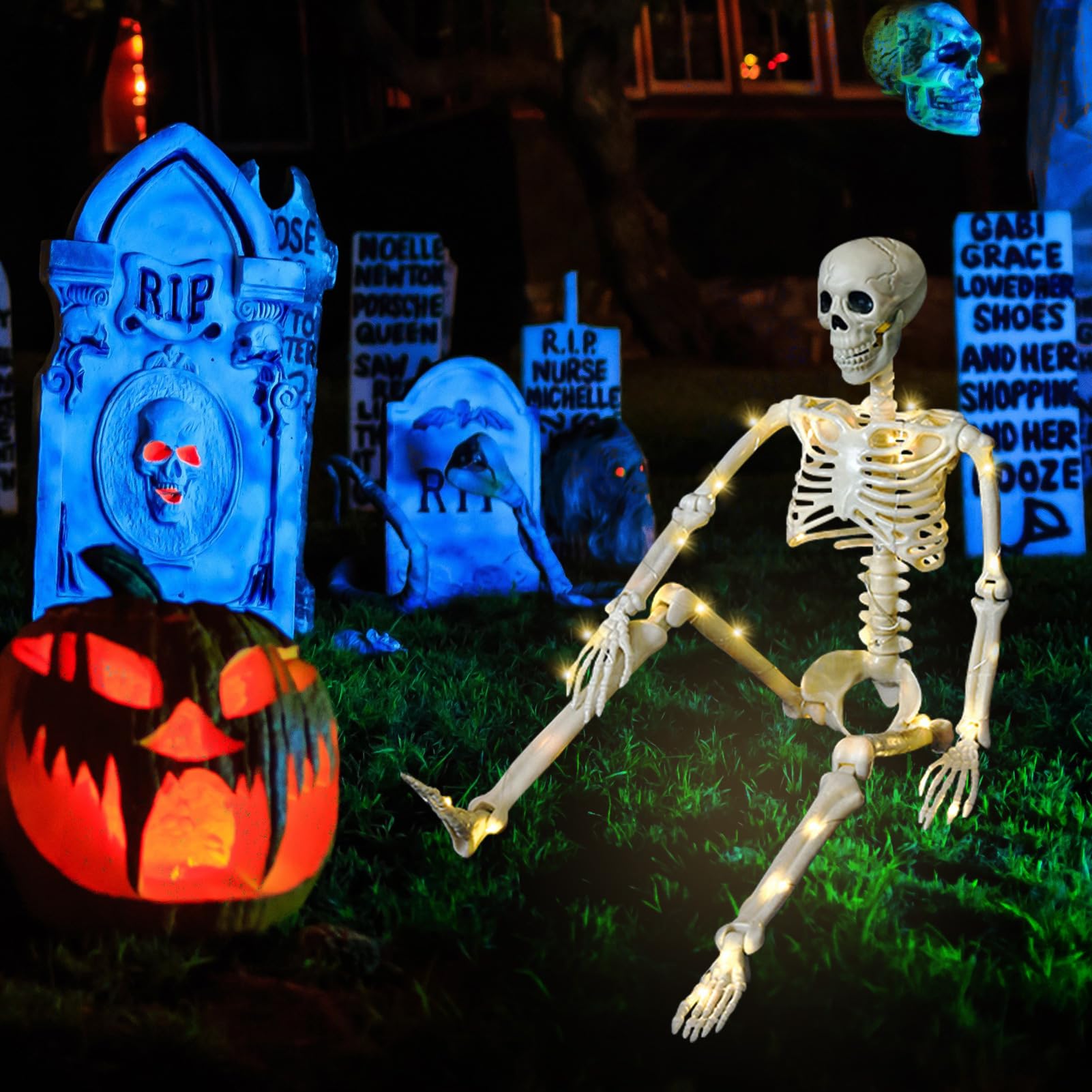 Halloween Skelett Deko 40cm - Bewegliches Gruselskelett Für Friedhofs-Szene
