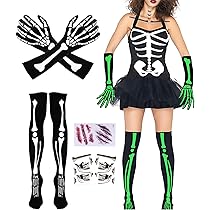 Perfekt für Halloween - dieses gruselige Skelett Kostüm Set macht dich zum Star jeder Party! Enthält Skelett-Strumpfhose und passende Handschuhe - Einheitsgröße passt den meisten Damen. Das 3D-Skelett-Muster sieht echt aus - schafft eine unheimliche Atmosphäre. Aus hochwertigem Polyester - atmungsaktiv, dehnbar und bequem zu tragen. Perfekt für Halloween, Karneval, Cosplay oder Mottopartys. Kombinierbar mit Minirock oder Hot Pants - für den perfekten Grusel-Look. Einfach anziehen und du bist der Hingucker! Auch als Accessoire im Alltag tragbar - für mutige Fashion-Fans. Einfach von Hand waschen - nicht in die Maschine. Mach dein Halloween unvergesslich - bestell jetzt und erschreck deine Freunde!