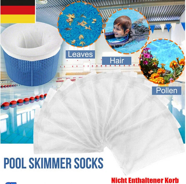 Halte deinen Pool kristallklar mit diesen praktischen Skimmer Socken! Das 20er-Set aus hochwertigem Nylon-Stoff ist die perfekte Ergänzung für deine Poolpflege. Mit den Maßen 21,5x12 cm sind die Socken groß genug, um jeden Standard-Skimmerkorb abzudecken, und dabei super elastisch - sie dehnen sich einfach über den Korb und sitzen perfekt. Wie ein feines Netz fangen sie alle Arten von Schmutz: Blätter, Gras, Haare, Schaum und andere grobe Partikel, bevor sie deinen Poolfilter verstopfen können. So bleibt dein Poolwasser sauberer und du sparst Kosten für Filterreinigung und Chemikalien. Einfach in den Skimmerkorb legen und schon arbeitet die Socke für dich! Die Socken halten normalerweise 4-8 Wochen, je nach Verschmutzungsgrad. Am besten kontrollierst du sie wöchentlich und reinigst oder ersetzt sie bei starker Verschmutzung. Praktisch: Sie sind wiederverwendbar - einfach ausspülen und wieder einsetzen. In weiß gehalten, sind sie unauffällig und stören nicht das Pool-Design. Mit 20 Stück hast du für die gesamte Badesaison genug Vorrat. Einfach, effektiv und kostensparend!