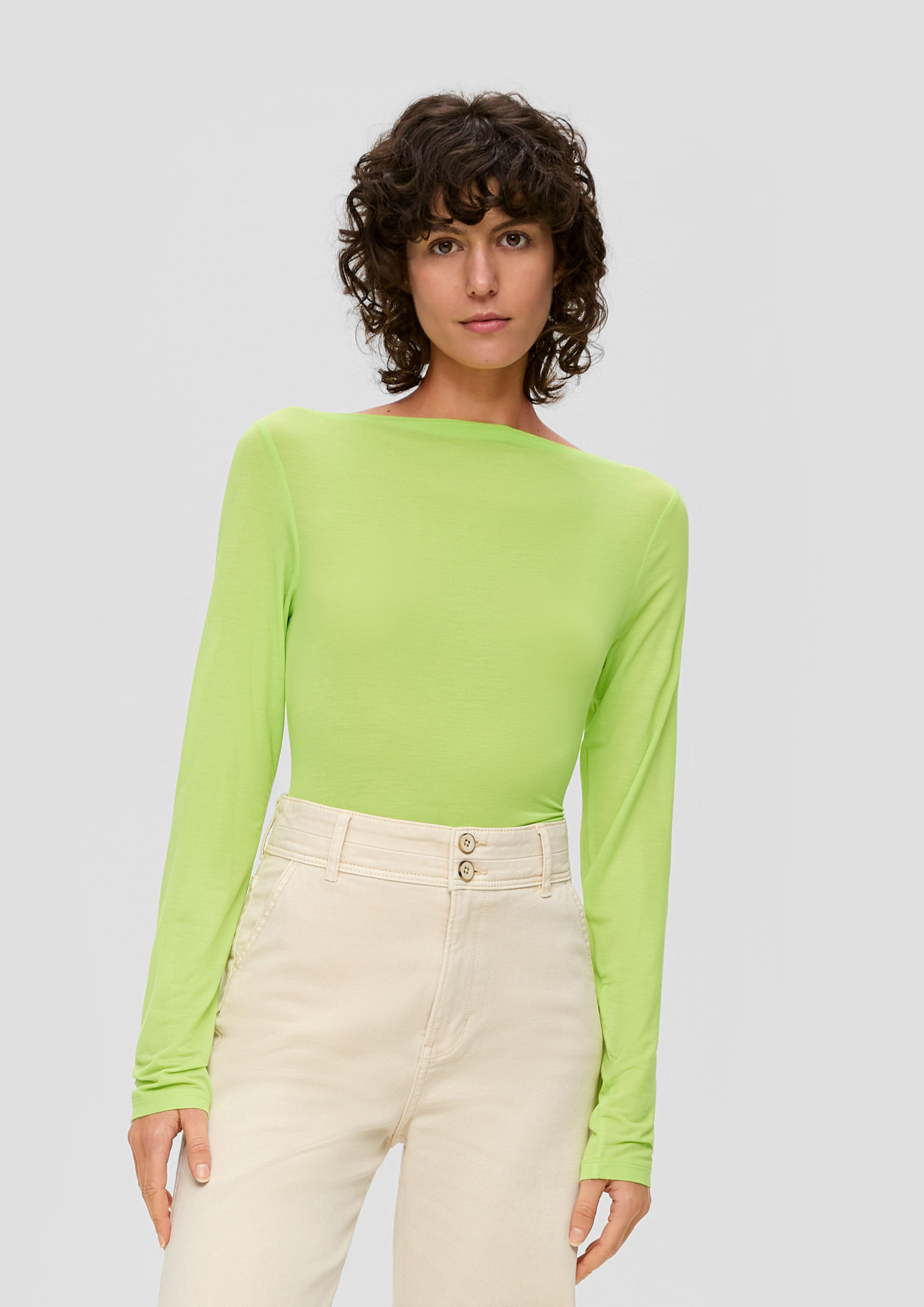 • QS Geripptes Longsleeve Slim Fit - Baumwollmix Langarmshirt
