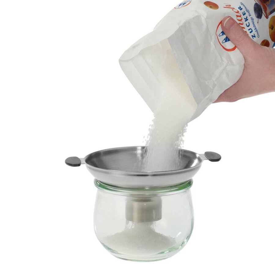 Wow, dieser Trichter ist ja mal der absolute Alleskönner! Sechs Funktionen in einem Gerät: normaler Trichter, Sieb, Kopfraum-Messer, Deckelentferner, Volumen-Umrechner und Flaschen-Füllhilfe. Aus hitzebeständigem Polypropylen - super robust und spülmaschinenfest. Passt für breite und normale Einmachgläser - wie praktisch ist das denn? Macht das Einkochen, Fermentieren und Abfüllen so viel einfacher. Die integrierten Volumen-Umrechnungen sind genial - kein langes Suchen in Kochbüchern mehr. Einfach ein durchdachtes Küchenwerkzeug, das dir echt Zeit und Nerven spart. Ob für Marmelade, eingelegtes Gemüse oder Getränke - dieser Trichter ist dein bester Freund in der Küche. Einfach ein Muss für jeden, der gerne selbst macht!