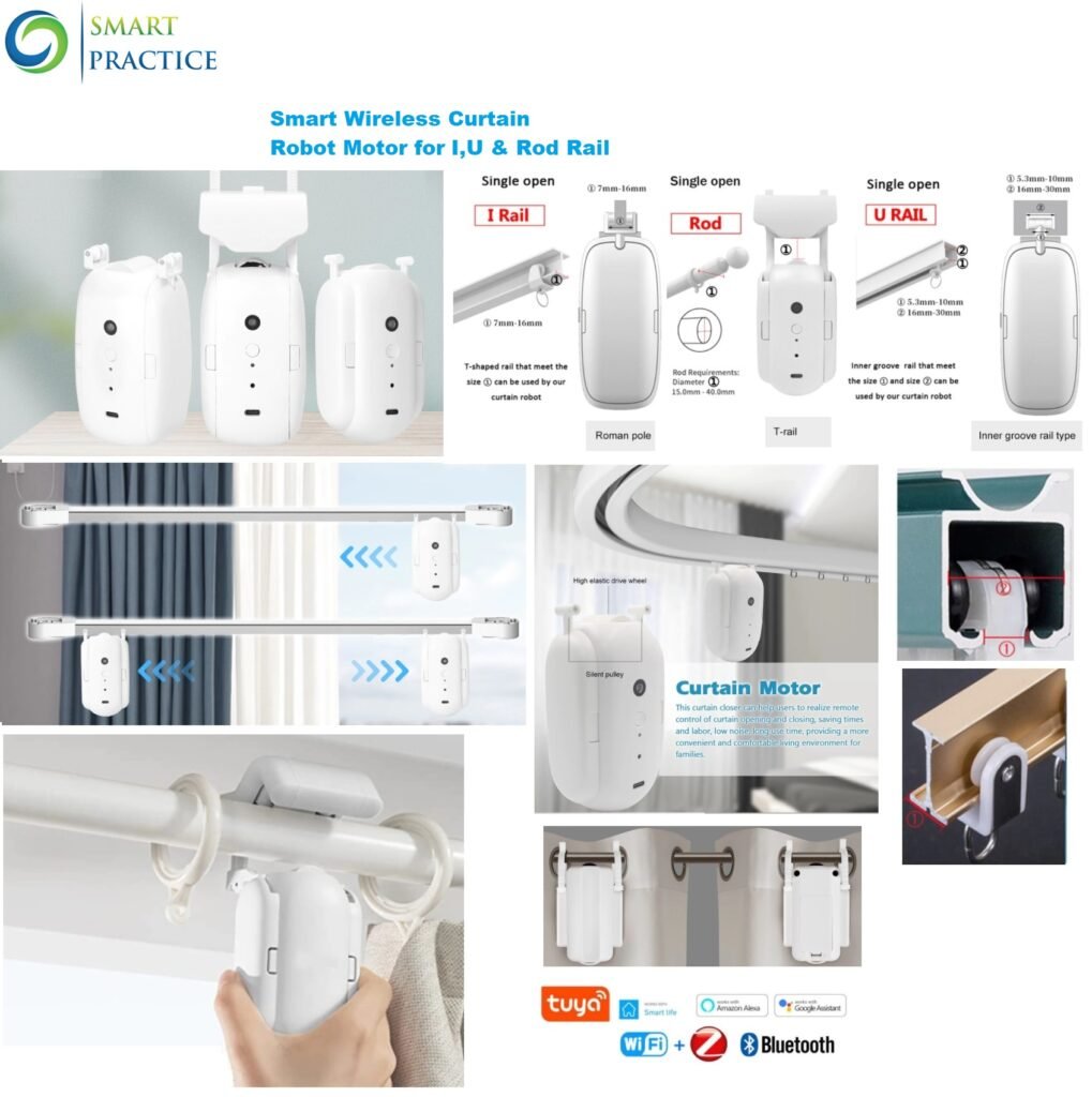 Smart Home Liebhaber, dieser Vorhangöffner macht euer Zuhause intelligenter! Mit WiFi und Bluetooth, Sprachsteuerung via App möglich. Einfache Installation ohne Bohren - einfach aufhängen und loslegen. 4000mAh Akku, kein Kabelsalat. Timer-Funktion für automatisches Öffnen/Schließen. Super leise (nur 25dB) - perfekt fürs Schlafzimmer. Kompatibel mit T-Track, U-Track und römischen Stangen. Genieße die Bequemlichkeit von smarten Vorhängen! Inklusive Gateway für volle Funktionalität.