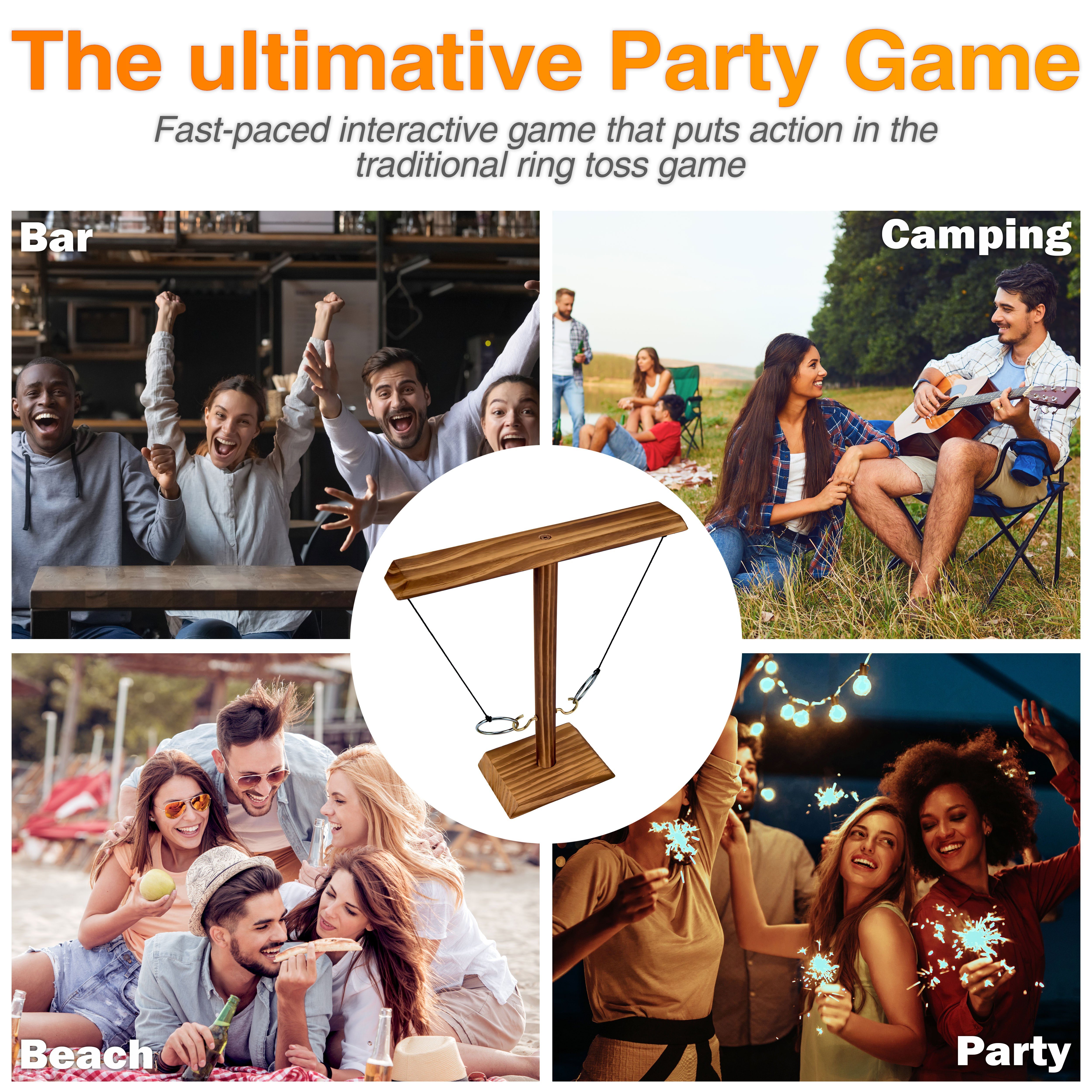 Spaß für die ganze Familie! Dieses klassische Ringwurfspiel aus Holz bringt Action in jeden Spieleabend. Für Kinder und Erwachsene geeignet - trainiert die Koordination und macht riesig Spaß. Einfacher Zusammenbau ohne Werkzeug - schnell spielbereit. Natürliches Holz-Design - jedes Stück einzigartig. Perfekt für drinnen und draußen - ob im Wohnzimmer, Garten oder auf der Terrasse. Spiele mit Freunden oder Familie - wer hat die ruhigste Hand? Der perfekte Zeitvertreib für gemütliche Abende oder Partys!