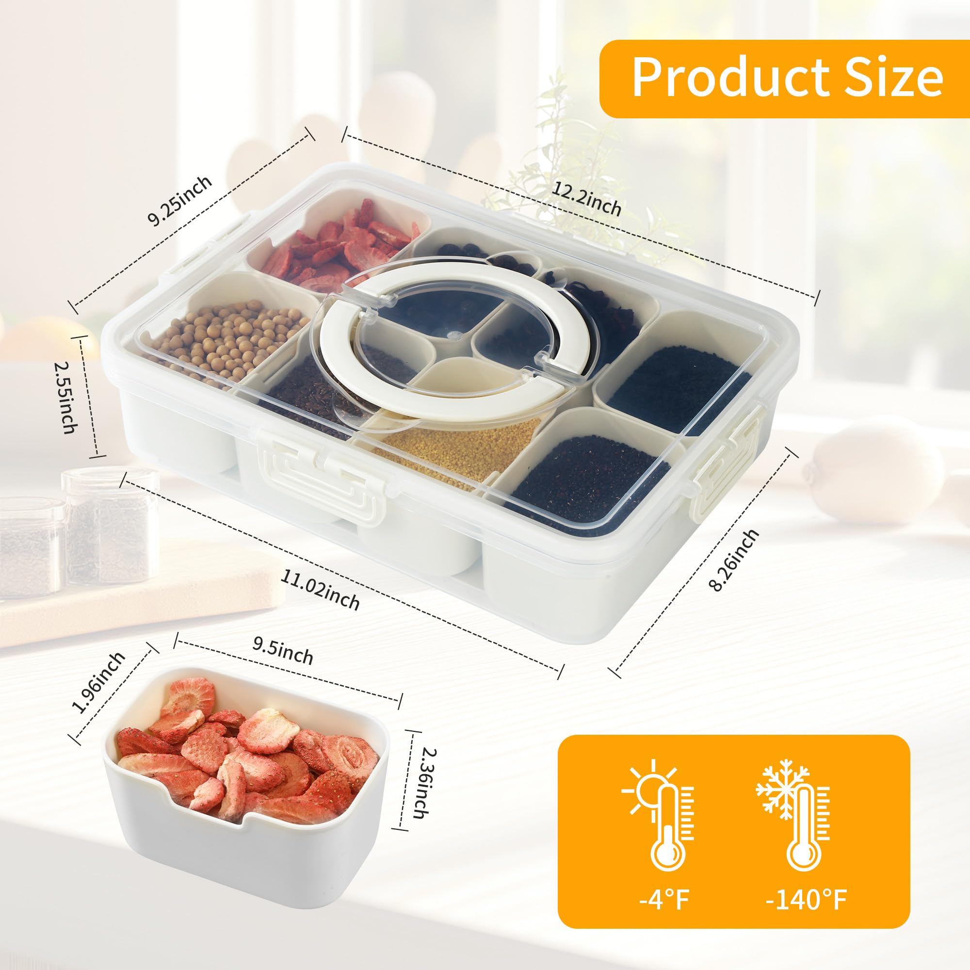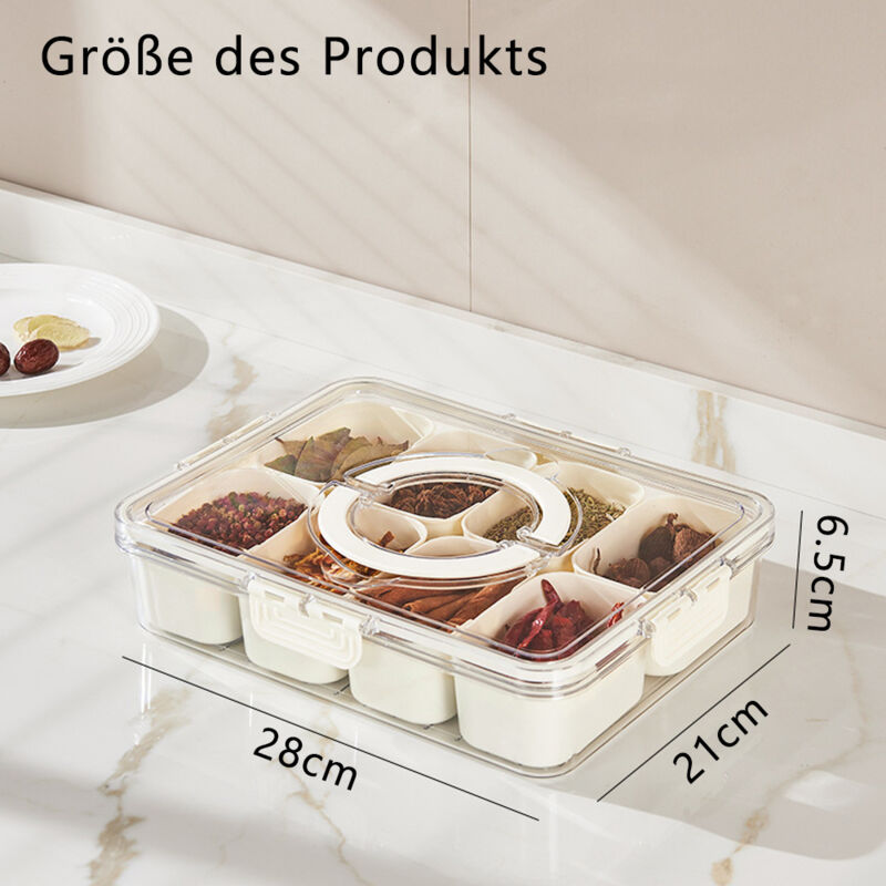 Ordnung muss sein - auch bei Snacks! Diese praktische Snackbox mit 16 einzelnen Fächern hält alles perfekt getrennt. Aus lebensmittelechtem, ungiftigem Kunststoff - geruchlos und super langlebig. Mit Deckel und praktischem Tragegriff ideal für unterwegs: Picknick, Arbeit, Schule oder Reisen. Die Silikondichtung hält alles frisch und sicher vor Auslaufen. Einfach zu reinigen - jede Schale separat waschbar (Achtung: nicht spülmaschinenfest!). Perfekt für Nüsse, Trockenfrüchte, Süßigkeiten, Obst oder Gewürze. Endlich Ordnung auf deiner Arbeitsplatte oder in der Küche!