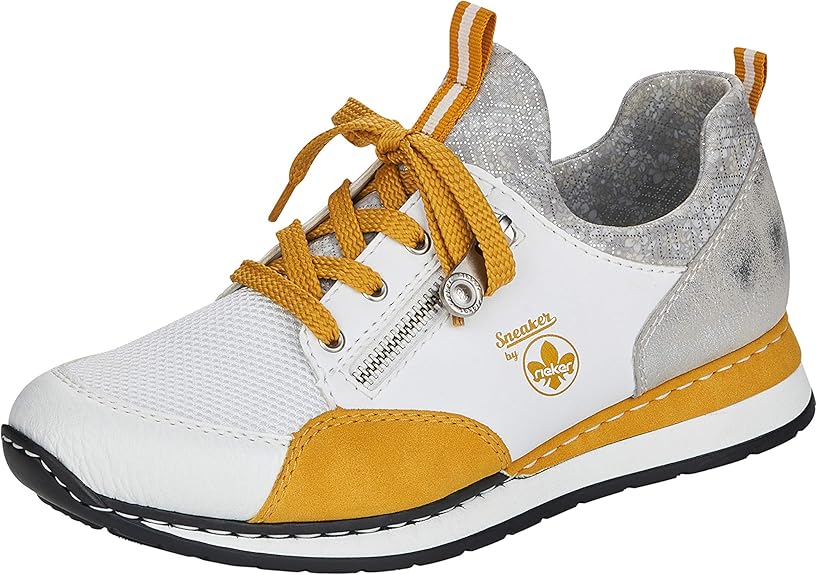 Wow, diese Rieker Sneaker sind ja mal der absolute Traum für jeden Tag! Die schwarzen Halbschuhe sehen nicht nur mega stylisch aus, sondern sind auch super bequem. Dank des Gummizugs schlüpfst du einfach rein - keine lästigen Schnürsenkel oder Verschlüsse! Die traditionelle Anflechter-Machart macht den Schuh total flexibel und robust, sodass er sich perfekt an deinen Fuß anpasst. Der dekorative Reißverschluss gibt dem ganzen noch den besonderen Pfiff. Aber das beste ist die Sohle: schockabsorbierend und superleicht, mit der extra weichen MemoSoft-Decksohle - da kannst du den ganzen Tag laufen ohne dass deine Füße wehtun! Aus Kunstleder gefertigt, mit Textil-Innenfutter für ein angenehmes Fußklima. Der 3,7 cm Keilabsatz gibt dir noch ne tolle Silhouette. Die Ready2GO-Funktion ist genial - einfach reinschlüpfen und loslaufen, ohne mit den Händen rumfummeln zu müssen. Perfekt für die Arbeit, zum Einkaufen oder einfach für unterwegs. Rieker steht ja bekanntlich für Qualität und Komfort - und diese Sneaker beweisen das mal wieder! Egal ob du viel stehst oder viel läufst - mit diesen Schuhen machst du alles richtig. Sie passen zu Jeans, Röcken oder Hosen - einfach ein Allrounder der in keiner Damengarderobe fehlen sollte!