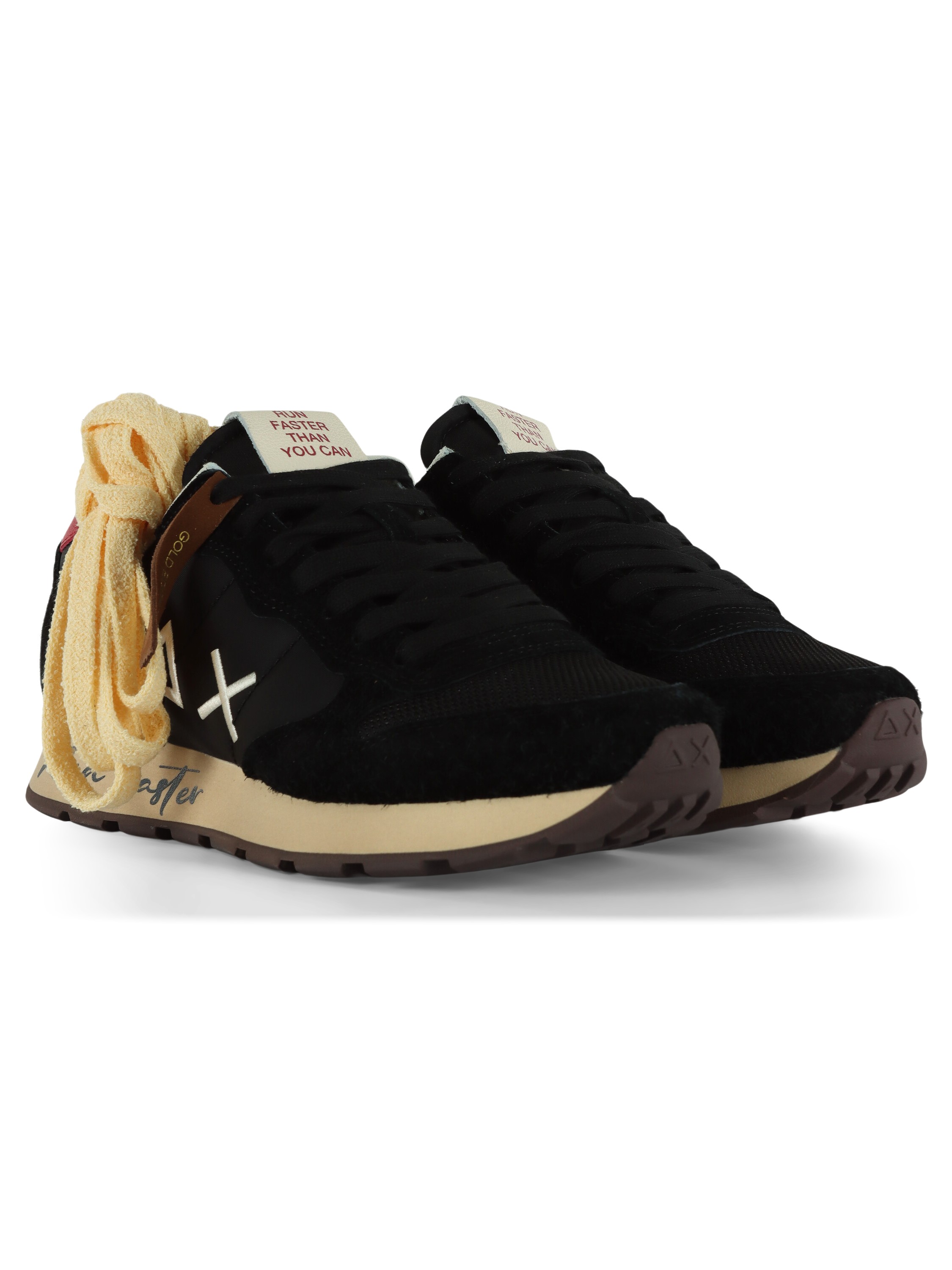 Vintage-Style vom Feinsten! Diese SUN68 Herren-Sneaker kombinieren schwarzes Wildleder mit Nylon für einen zeitlosen Look. Mit roten Akzenten an der Ferse und gummierten Laufsohlen im Retro-Design. Die 3cm Absatzhöhe gibt dir extra Komfort. Ausgestattet mit herausnehmbarer Einlage für individuellen Tragekomfort. Die Textil-Innenfütterung sorgt für ein angenehmes Fußklima. Perfekt für Casual-Outfits, zum Laufen oder einfach nur für den stylischen Alltag. Schnür sie dir an und fühl dich einfach wohl!