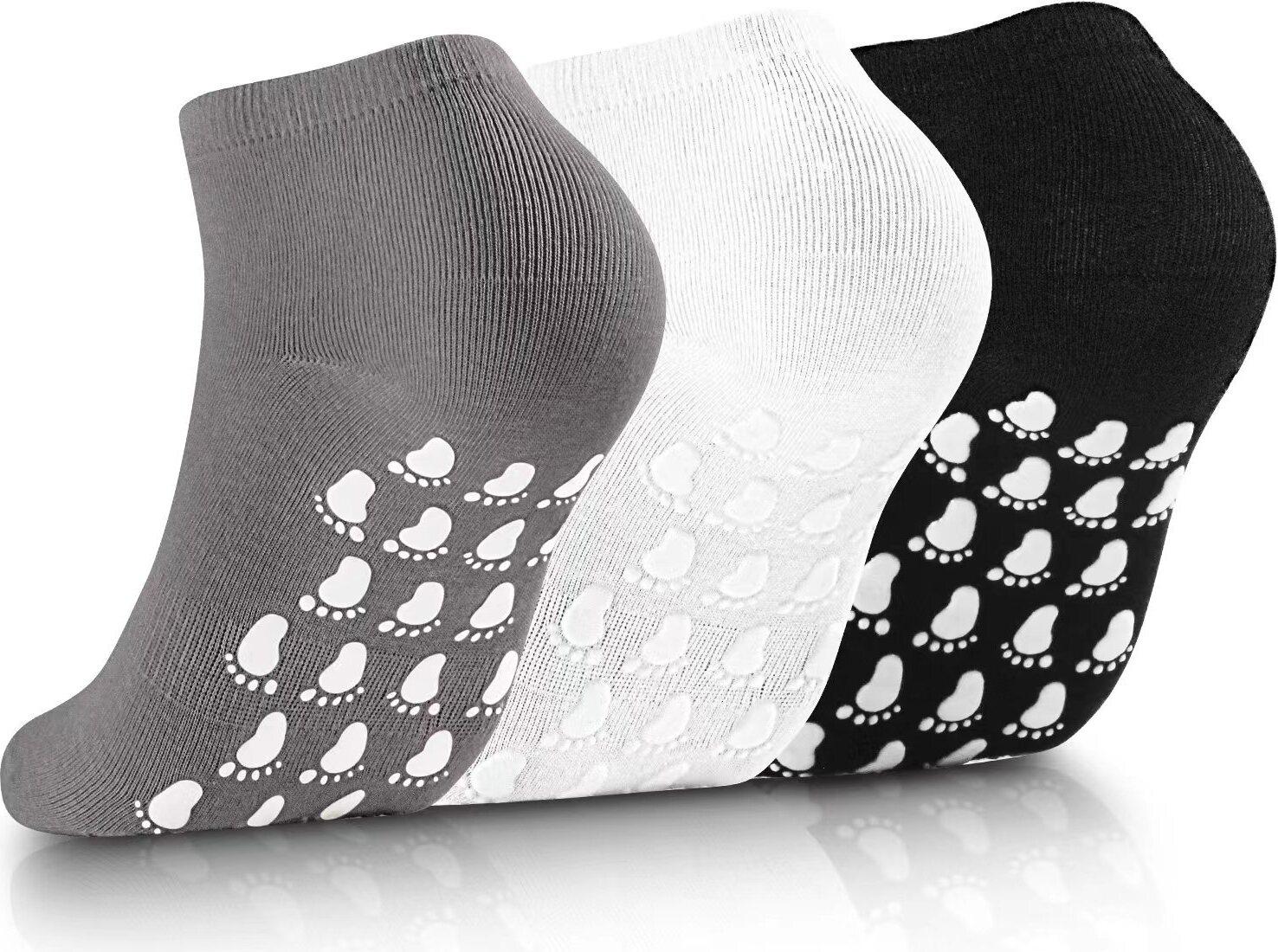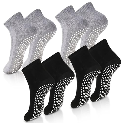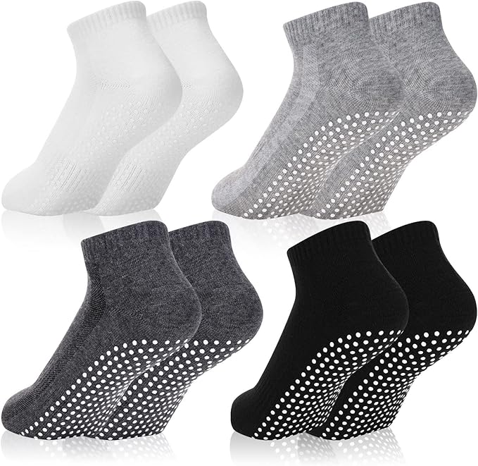 Kennst du das? Du willst dich auf deine Yoga- oder Pilates-Übungen konzentrieren, aber deine Füße rutschen ständig auf der Matte? Mit diesen speziellen Grip-Socken gehört das Problem der Vergangenheit an! Das 3er-Set in Schwarz, Weiß und Rosa mit stylischem Leopardenmuster sieht nicht nur super aus, sondern hält auch bombenfest. Die Noppen an der Sohle geben dir auf der Matte genug Grip für auch die anspruchsvollsten Positionen. Aus weicher, atmungsaktiver Baumwolle - bequem wie normale Socken, aber mit dem Extra an Sicherheit. Perfekt für Größe 35-40, mit mittlerer Bundhöhe für optimalen Sitz. Ob im Studio oder beim Home-Workout - endlich kein lästiges Rutschen mehr! Super für Pilates, Yoga, Barre oder Gymnastik. Leicht zu waschen und langlebig. Mach dein Training effektiver und sicherer! Stell dir vor: Du kannst dich voll auf deine Atmung konzentrieren, ohne ständig deine Füße korrigieren zu müssen. Das ist echter Trainingskomfort!