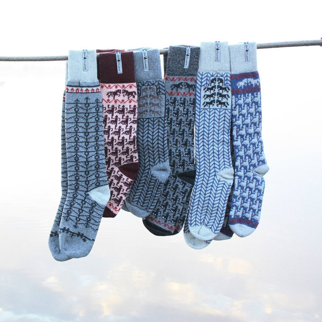 Wow, diese Socken sind ja richtig kuschelig! Aus 100% Merinowolle - die kratzt nicht und riecht auch nach langem Tragen nicht. Hergestellt in Schweden von Öjbro, mit diesen mega-coolen Mustern, die alle eine Geschichte erzählen. Ob 'Dalarna' mit den typischen Schwedenpferdchen oder 'Skogen' mit Elch und Rabe - jedes Design ist ein Unikat! Es gibt sie in drei Größen: S (34-37), M (38-41), L (42-45). Perfekt als Bürosocken, für Sport oder einfach nur zum Chillen. Merinowolle wärmt bei Kälte und kühlt bei Wärme - einfach genial! Und weil's reine Naturwolle ist, bleiben deine Füße immer trocken und gemütlich. Echt schwedische Qualität, die lange hält!