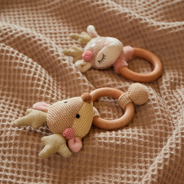 Oh, wie süß! Diese Rasselsöckchen mit den niedlichen Koala-Figuren werden nicht nur die Herzen aller Eltern höher schlagen lassen, sondern auch dein Baby begeistern. Jedes Strampeln wird mit einem fröhlichen Rasselgeruch belohnt - das fördert spielerisch die Sinne und die Motorik deines Kleinen!