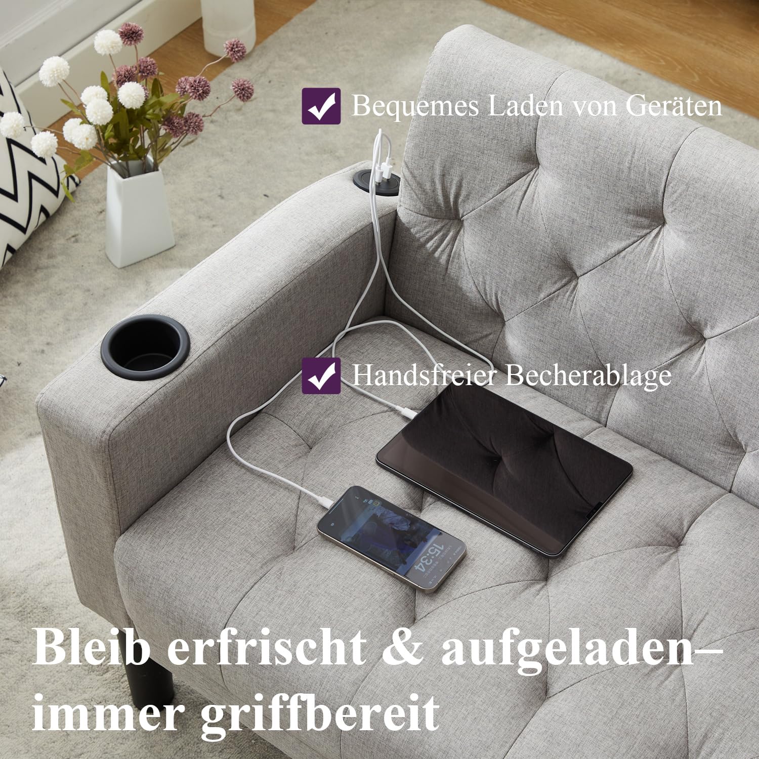 Mann, dieses Sofa hat alles, was man sich wünscht! Der GRAVFORCE 2-Sitzer bietet nicht nur mega bequemen Sitzkomfort durch hochdichten Schaumstoff, sondern hat auch noch zwei USB-Anschlüsse direkt an der Armlehne. So kannst du entspannt auf der Couch lümmeln und dabei Handy oder Tablet aufladen - genial, oder? Die versenkten Becherhalter sorgen dafür, dass dein Getränk immer sicher steht. In hellgrauem Rautenstoff sieht das Sofa richtig modern aus und passt in jedes Wohnzimmer, Jugendzimmer oder Büro. Die rutschfesten Bein-Pads schützen deinen Boden und der Aufbau ist super einfach - auch für absolute Heimwerker-Anfänger! Mit 157 cm Breite bietet es zwei Personen richtig gemütlich Platz. Perfekt für Filmabende, Gäste oder einfach zum Entspannen nach einem langen Tag. Qualitativ hochwertig verarbeitet mit stabilem Holzgestell - da macht auch langes Sitzen und Liegen nichts aus. Ein Sofa, das einfach alles kann - comfort, Style und praktische Features in einem!