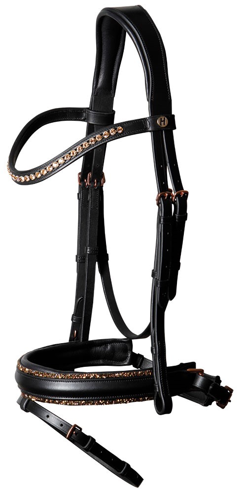 HKM Sofia Trense Schwarz/Rosegold - Anatomische Pferdetrense Mit Strass-Steinen