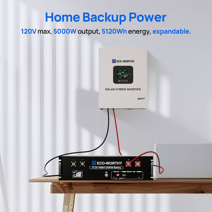 Das komplette Solar-Set für deine Energieunabhängigkeit! Dieses ECO-WORTHY Komplettset besteht aus einer 48V 100Ah LiFePO4 Batterie mit 10.24kWh Kapazität und einem leistungsstarken 5000W Hybrid-Wechselrichter. Die Batterie verfügt über Bluetooth-Funktion - per App kannst du jederzeit den Ladezustand, Spannung und andere wichtige Daten checken. Mit umfangreichem Schutz vor Überhitzung, Überstrom und Kurzschluss. Der Wechselrichter hat einen integrierten 80A MPPT Solar-Laderegler und erzeugt eine reine Sinuswelle - perfekt für empfindliche Elektronik. Bis zu 15 Batterien parallel schaltbar für bis zu 76800Wh Gesamtkapazität! Kompatibel mit Standard-3U-Server-Schränken und platzsparend vertikal montierbar. Ideal für Wohnmobile, Gartenhäuser oder als Hausnotstromversorgung. Mit 0% MwSt. für Privatkunden - eine lohnende Investition in deine energieautarke Zukunft! Perfekt für alle, die ihre Stromkosten senken und unabhängiger werden wollen.