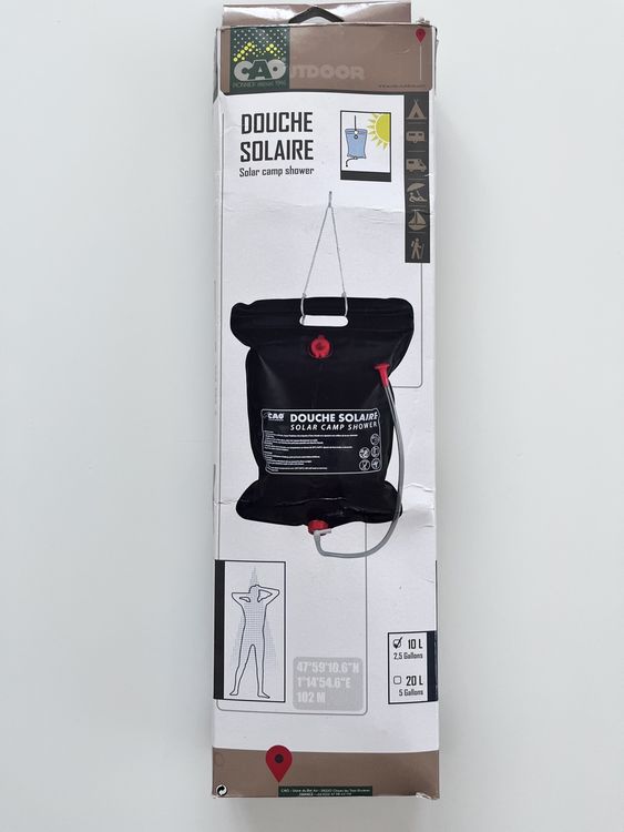 Perfekt für den nächsten Campingurlaub oder den eigenen Garten! Diese Solardusche braucht nur Sonnenlicht, um das Wasser auf bis zu 50°C zu erwärmen. Einfach mit Wasser füllen, in die Sonne legen und nach ein paar Stunden hast du eine warme Dusche. Der 10-Liter-Sack reicht für eine erfrischende Dusche und lässt sich leicht aufhängen. Super praktisch, wenn mal kein fließend Wasser da ist - ob beim Camping, im Garten oder sogar für die Kinder zum Plantschen. Achtung: Immer erst die Temperatur checken, bevor dus duschst! Leicht, robust und platzsparend verpackbar. Macht jeden Outdoor-Aufenthalt angenehmer. Einfach befüllen, in die Sonne legen und duschen wann du willst - komplett unabhängig von Strom oder Wasseranschluss. Einfach genial für alle, die gerne draußen sind!
