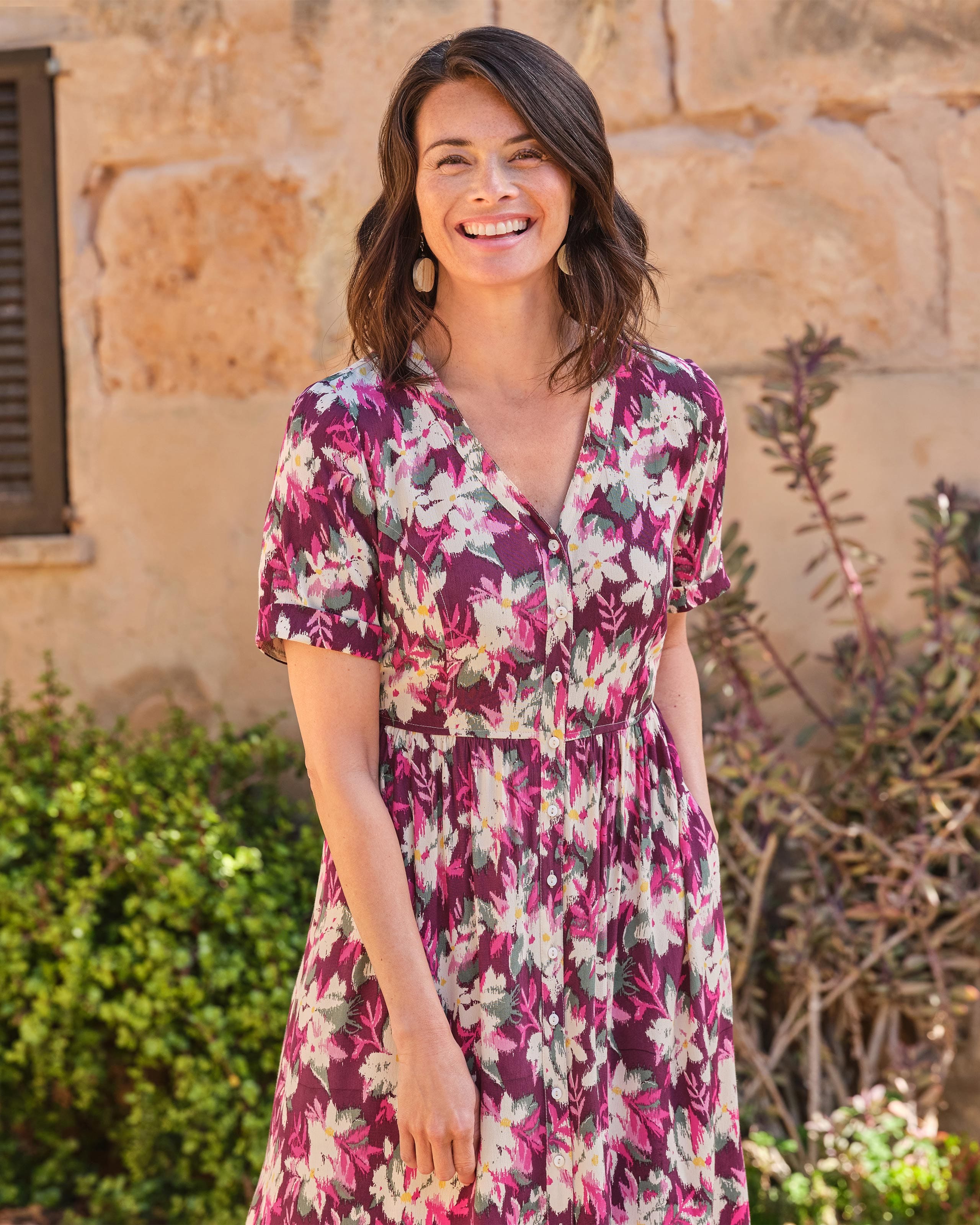 Oh, wie schön! Dieses Sommerkleid ist einfach perfekt für warme Tage. Aus leichter Musselin-Baumwolle - total luftig und angenehm zu tragen. Mit süßem Blumendruck und praktischen Taschen - was will man mehr? Ärmellos mit rundem Halsausschnitt - klassisch und zeitlos. Knielang und mit Falten - sitzt einfach traumhaft. Perfekt für Strand, Stadt oder Gartenparty. Nur 190 g leicht - kaum spürbar. In verschiedenen Farben erhältlich - da findest du sicher deinen Favoriten! Einfach anziehen und sich wohlfühlen - so macht Sommer Spaß!