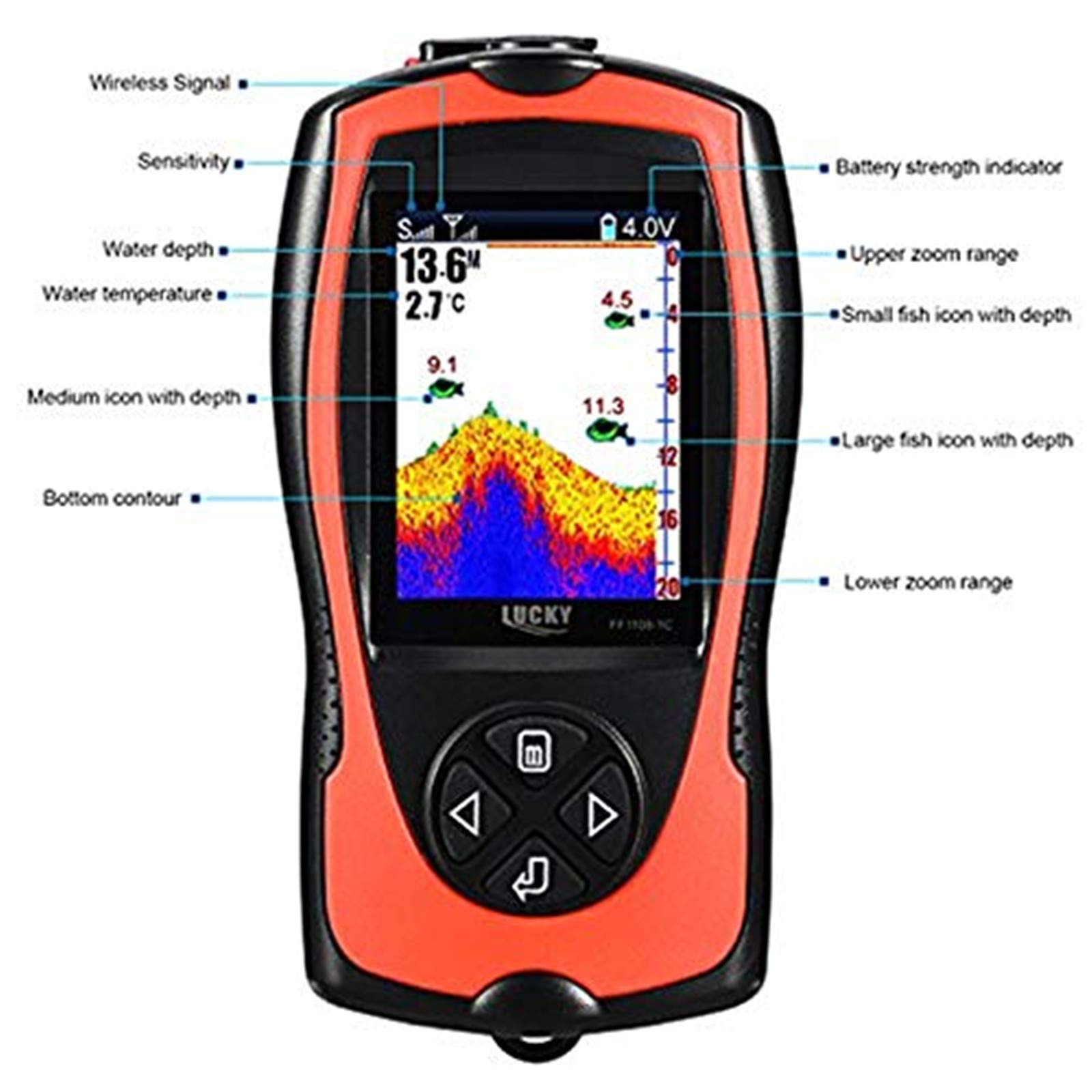 Dieser tragbare Fischfinder ist der geheime Vorteil für jeden Angler! Mit dem 2,8 Zoll großen HD-Farbdisplay siehst du klar, was unter der Wasseroberfläche passiert. Die drahtlose 2,4 GHz Verbindung hat eine Reichweite von bis zu 100 Metern - du kannst also frei am Ufer oder im Boot umhergehen. Der Sonarsensor erfasst Wassertiefen von 2 bis 148 Fuß (0,6-36m) mit einer Frequenz von 125 kHz und einem 90° Strahlwinkel. So findest du genau die Stellen, wo die Fische sind! Hergestellt aus robustem ABS-Material, wasserfest und super leicht zu transportieren. Die intuitive Bedienung mit mehrsprachiger Unterstützung macht es auch für Anfänger einfach. Im Lieferumfang ist alles dabei: Controller, Detektor, Antenne, Datenkabel, Lanyard und Bedienungsanleitung. Perfekt für die Eisfischerei, Angeln vom Boot oder Ufer - einfach den Detektor ins Wasser halten und schon siehst du auf dem Display, ob sich Fische in der Nähe aufhalten. Spart Zeit und erhöht deine Erfolgschancen enorm. Egal ob du Hobbyangler oder passionierter Fischer bist - mit diesem Gerät wirst du mehr fangen und mehr Spaß beim Angeln haben!