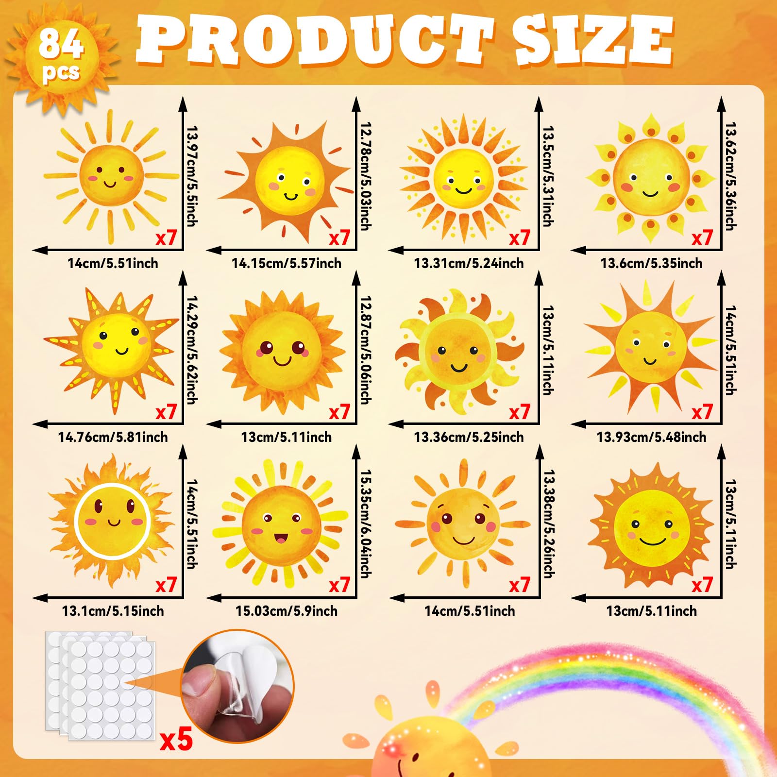 5 verschiedene Sonnen-Designs sorgen für Abwechslung. Perfekt für Frühlings- und Sommer-Themen, Geburtstagspartys oder einfach um das Klassenzimmer fröhlicher zu gestalten.