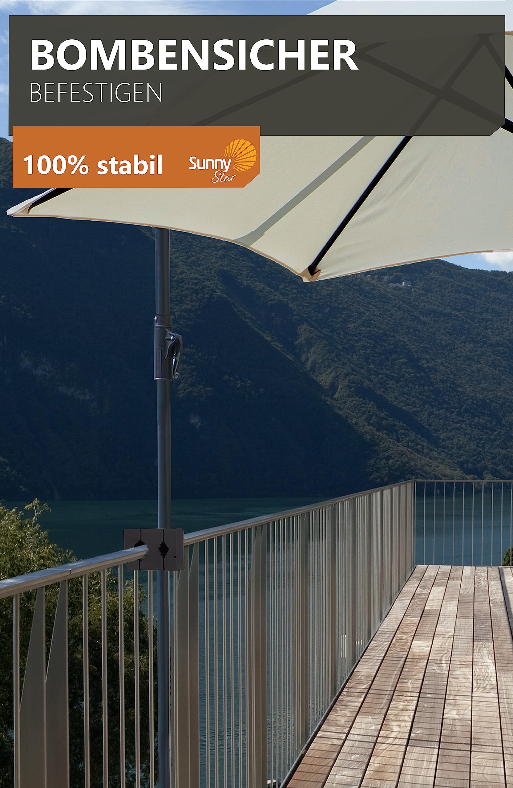 Einfach anklipsen, Sonnenschirm eindrehen und den Sommer genießen! Die Halterung ist ein echter Kraftprotz und macht lästiges Schleppen von schweren Schirmständern überflüssig. Perfekt für alle Balkon-Liebhaber, die ihren Platz optimal nutzen wollen.