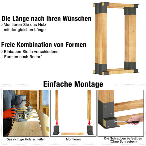 Endlich Ordnung im Holzstapel! Diese 12-teilige Holzstapelhilfe aus robustem Stahl macht das Stapeln von Brennholz zum Kinderspiel. Die Halterungen haben keine scharfen Ecken und gleichmäßige Schweißnähte - sieht nicht nur gut aus, sondern ist auch sicher in der Handhabung. Das Holz wird vom Boden ferngehalten, was für bessere Luftzirkulation sorgt und vor Fäulnis schützt. So bleibt dein Brennholz immer trocken und sauber. Einfache Montage - geeignet für Kanthölzer 70x70 mm (senkrecht) und 40x60 mm (waagerecht). Perfekt für Keller, Garage, Garten oder Hauswand. Wetterfest und langlebig - hält jedem Klima stand. Platzsparend zu verstauen und immer wieder verwendbar. Mach deine Holzlagerei professionell!