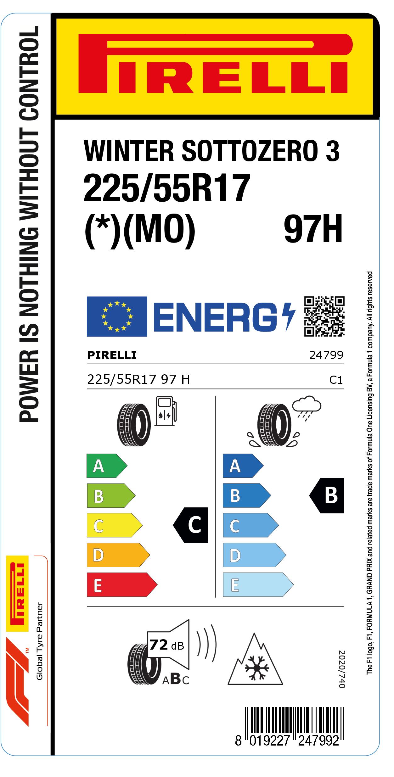 Pirelli Winter Sottozero 3 225/55R17 97H - Winterreifen M+S Run Flat