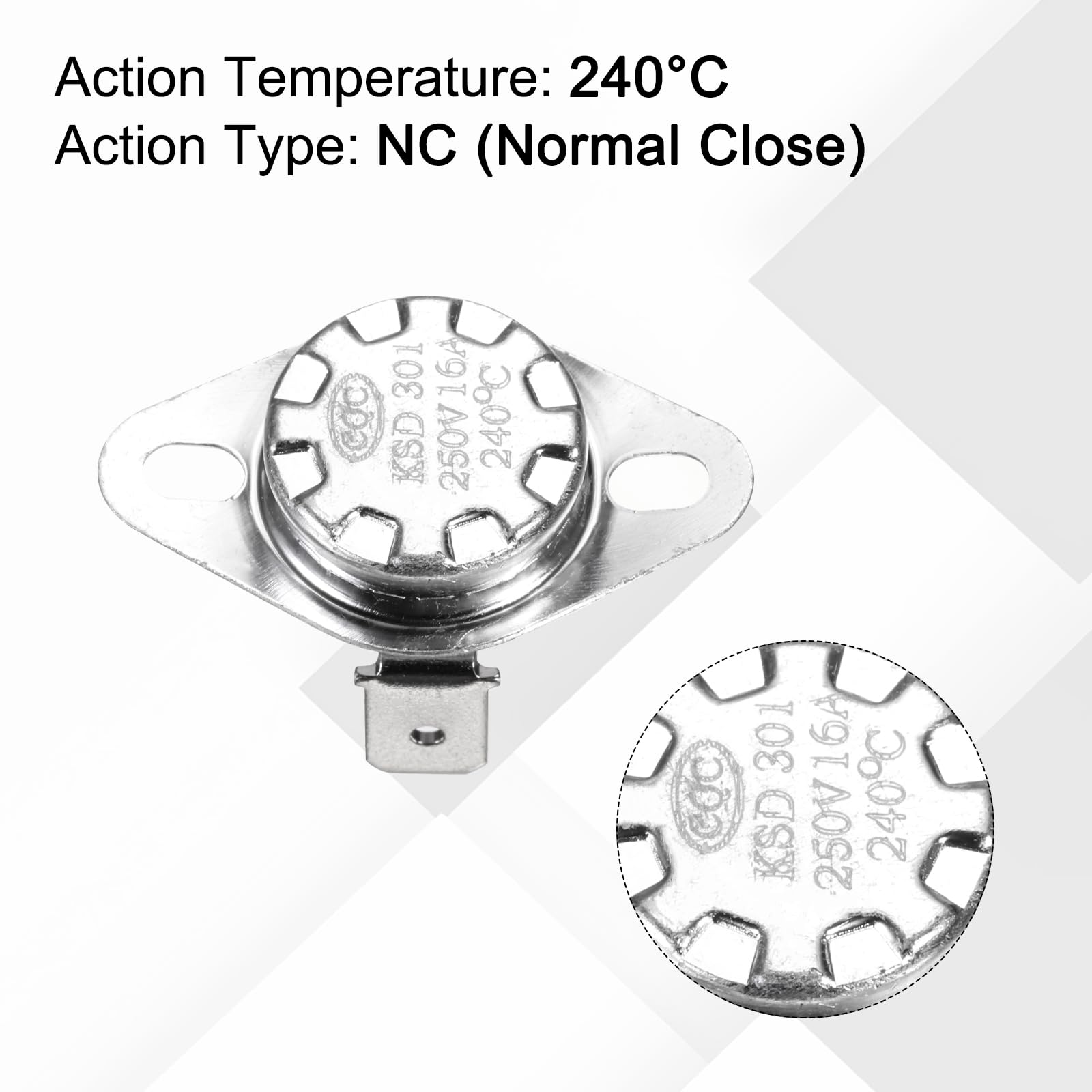 Praktische Temperaturregler für viele Anwendungen! Diese Keramik-Thermostate der Serie KSD301 schalten bei 135°C ab und schließen sich wieder bei etwa 130°C. Normalerweise geschlossen (NC), öffnen sie sich bei Erreichen der Temperatur und unterbrechen den Stromkreis. Perfekt für Haushaltsgeräte wie Wasserkocher, Bügeleisen, Kaffeemaschinen oder Heizgeräte. Technische Daten: 10A/250V AC, Maße 3,8x1,2cm, aus Metall und Keramik in Weiß/Silber. Im 2er-Set geliefert - immer ein Ersatz parat! Das keramische Isolationsdesign bietet zusätzlichen Schutz. Kompakt, zuverlässig und preiswert - genau das Richtige für deine Reparatur- oder Bastelprojekte. Einfach einbauen und von zuverlässiger Temperaturkontrolle profitieren!