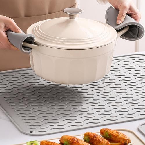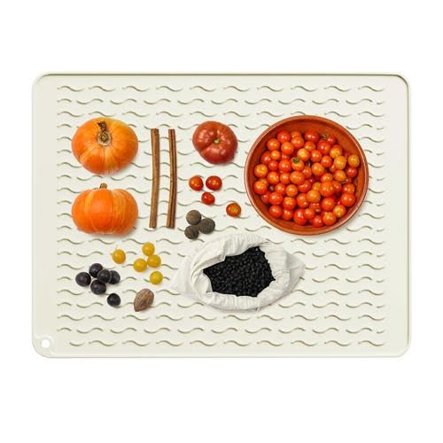 Diese Silikon-Abtropfmatte ist der absolute Game-Changer für deine Küche! Mit 40x30cm passt sie perfekt in die Spüle und schützt deine Arbeitsplatte vor Wasser und Kratzern. Die gewellten Rillen lassen das Wasser super ablaufen - dein Geschirr trocknet im Nu und steht nicht im Wasser. Aus hochwertigem Silikon gefertigt, ist sie hitzebeständig, verschleißfest und total langlebig. Sie wiegt nur 216g - leicht aber stabil. Wenn du sie nicht brauchst, einfach zusammenrollen oder falten und platzsparend verstauen. Reinigen ist ein Kinderspiel: Einfach mit Wasser abspülen, die Rillen fangen den Schmutz super ein. Du kannst sie nicht nur in der Spüle verwenden, sondern auch als Arbeitsunterlage, Tischset oder sogar als Gefrierunterlage. In beige, grün oder grau erhältlich - passt zu jeder Küche. Macht das Abwasch-Erlebnis so viel angenehmer und deine Küche sauberer. Einfach ein praktisches Teil, von dem du nicht mehr weißt, wie du ohne ausgekommen bist!