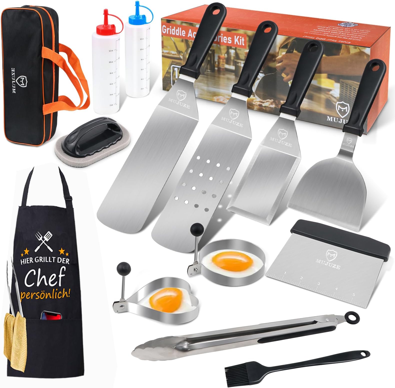 Perfekt für deine Teppanyaki- und BBQ-Grillsessions! Diese hochwertige Spachtel von yoaxia macht das Wenden und Schneiden zum Kinderspiel. Mit 11,5cm breiter Klinge aus robustem Stahl - ideal für Steaks, Gemüse und mehr. Der angenehme Holzgriff liegt gut in der Hand und wird nicht heiß. Gesamtlänge 27cm für sicheres Arbeiten am Grill. Nur 170g leicht - ermüdungsfreies Hantieren auch bei langen Grillabenden. Perfekt für asiatische Gerichte, aber auch klassisches BBQ. Ein unverzichtbares Werkzeug für jeden Grill-Profi. Einfache Reinigung - spülmaschinengeeignet. Mach deine Grillparty zum kulinarischen Erlebnis! Auch ideal als Geschenk für Grill-Liebhaber. Hol dir den professionellen Touch für deine Küche und deinen Grill!