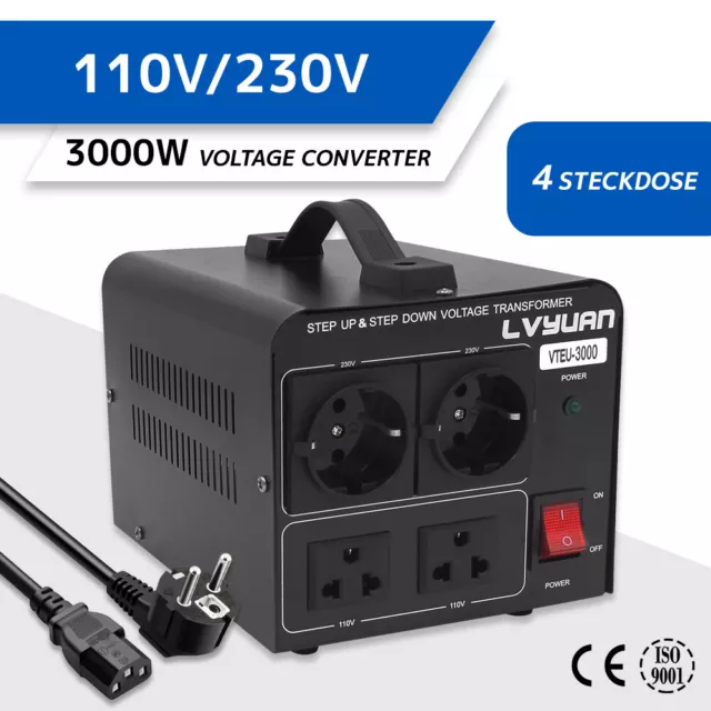 Praktischer Spannungswandler für deine Reisen in die USA! Leistung: 300 W - für die meisten Kleingeräte ausreichend. Wandelt 220V auf 110V um - perfekt für amerikanische Elektronik. Mit EU-Stecker - einfach in deutsche Steckdosen stecken. Kompakt: 100x75x65 mm - leicht und transportabel. Mit Überhitzungs-, Kurzschluss- und Überlastschutz - sicher in der Anwendung. Ideal für: Smartphones, Rasierer, Kameras, Tablets - viele Geräte. Aus hochwertigem Kunststoff - gute Isolierung und Hitzebeständigkeit. Nie wieder Probleme mit unterschiedlichen Steckdosen im Ausland. Einfach einstecken und deine Geräte nutzen - weltweit einsatzbereit!