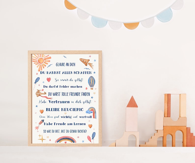 Wie wäre es mit einer täglichen Portion Motivation für dein Kind? Dieses wunderschöne Affirmationsposter von SpecialMe lässt sich personalisieren - mit dem Namen deines Kindes wird es zu einem ganz besonderen Einrichtungsstück. In strahlendem Weiß mit niedlichen Illustrationen und motivierenden Sprüchen. Perfekt fürs Kinderzimmer, als täglicher Mutmacher oder zur Einschulung. Erhältlich in drei Größen: A5, A4 oder A3 - optional mit passendem Rahmen. Hochwertiger Kunstdruck mit lebendigen Farben. Fördert spielerisch das Selbstbewusstsein und macht das Lernen zum Abenteuer. Ein wunderbares Geschenk zur Geburt, zum Geburtstag oder zur Einschulung. Dein Kind wird dieses persönliche Poster lieben!