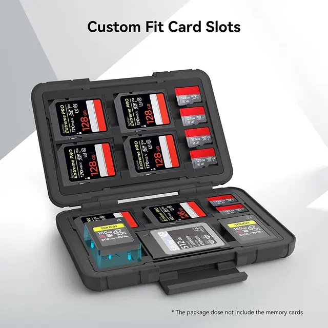Deine wertvollen Speicherkarten sicher verwahren! Diese praktische Tasche bietet Platz für 8 SD- und 8 Micro SD-Karten. 💾 IPX5 wasserdicht, schützt zuverlässig vor Spritzwasser und Staub. Robuste Polycarbonat-Schale mit Silikondichtung. Jeder Slot gummiert für optimalen Schutz vor Stößen. Mit Karabiner für Rucksack oder Gürtel. Perfekt für Fotografen, Drohnen-Piloten oder alle, die viele Karten sicher transportieren müssen. Deine Daten sind damit immer bestens geschützt!